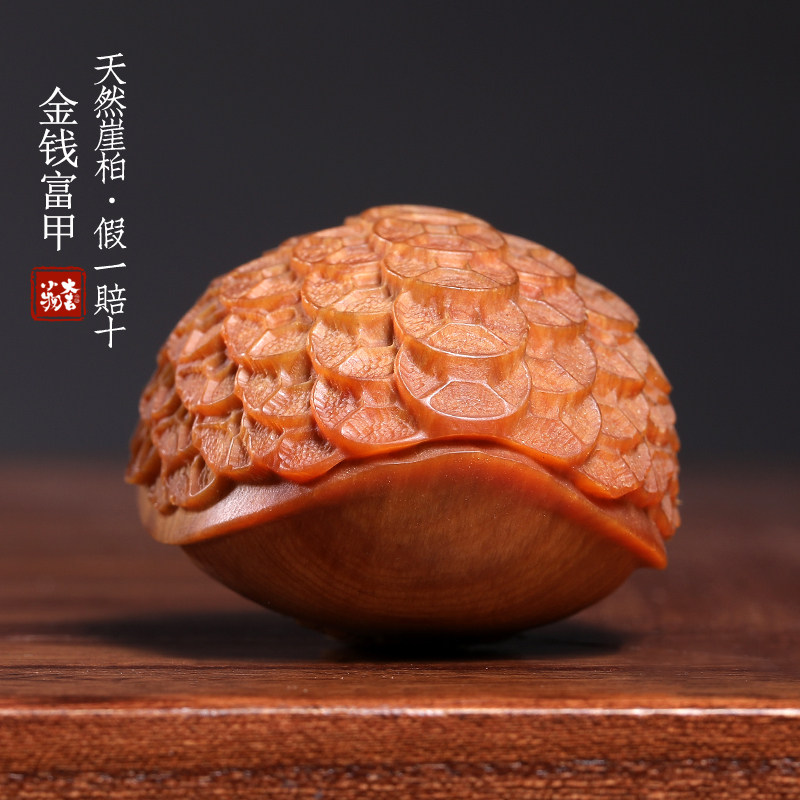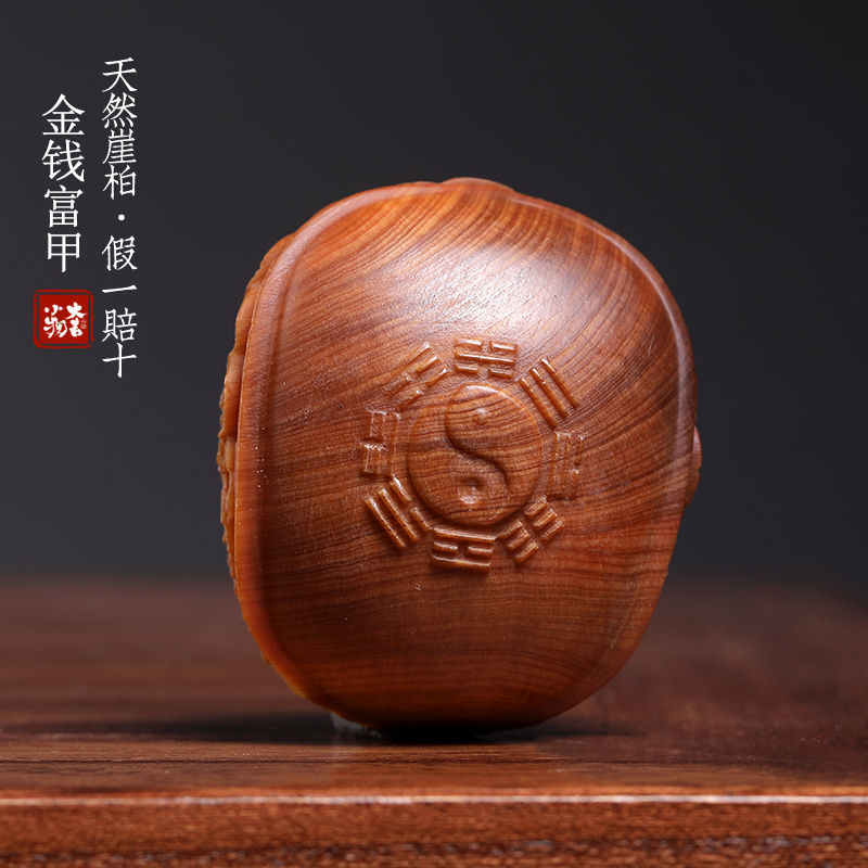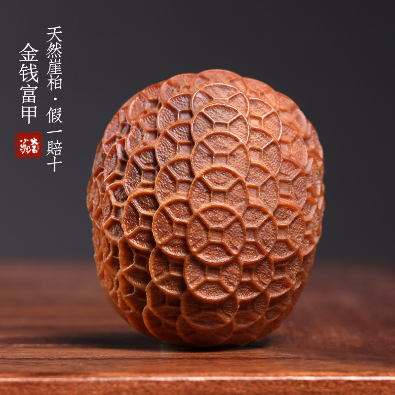 天然崖柏木实木雕刻满雕铜钱金钱富甲文玩家居装饰品摆件手把件