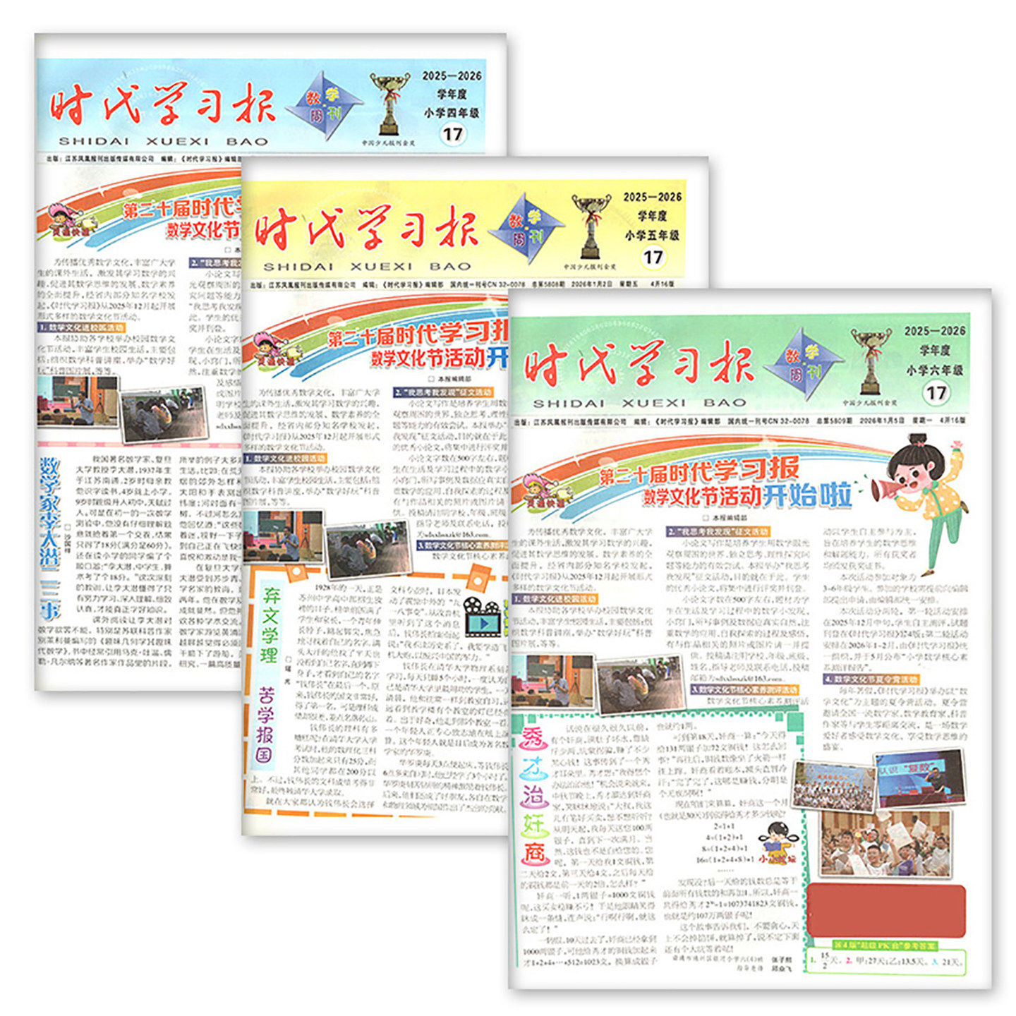 现货!【时代学习报数学周刊苏教版】2026年春季/秋季学期含配套试卷 小学一二三四五六年级1-6年级课练报纸杂志哈博士兴趣数学过刊