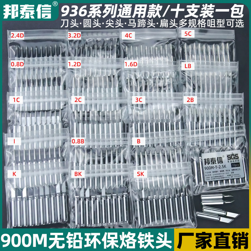 邦泰信936焊台恒温通用900M电烙铁头内热式K刀口头B圆尖咀马蹄