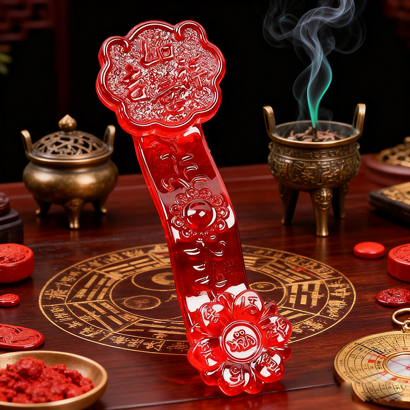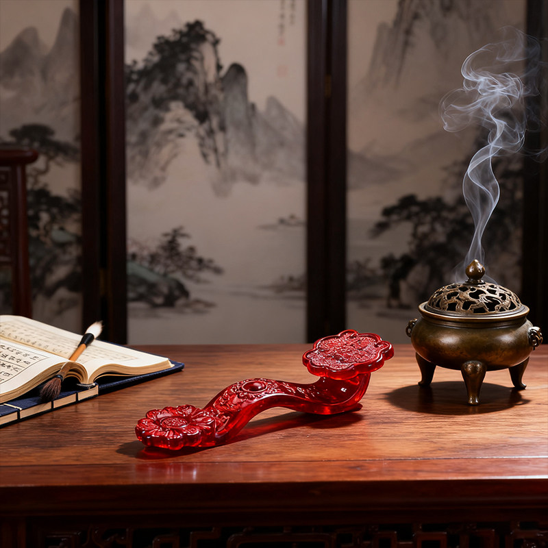 红色水晶如意摆件招财摆件家居桌面装饰品聚宝如意家用传统国学