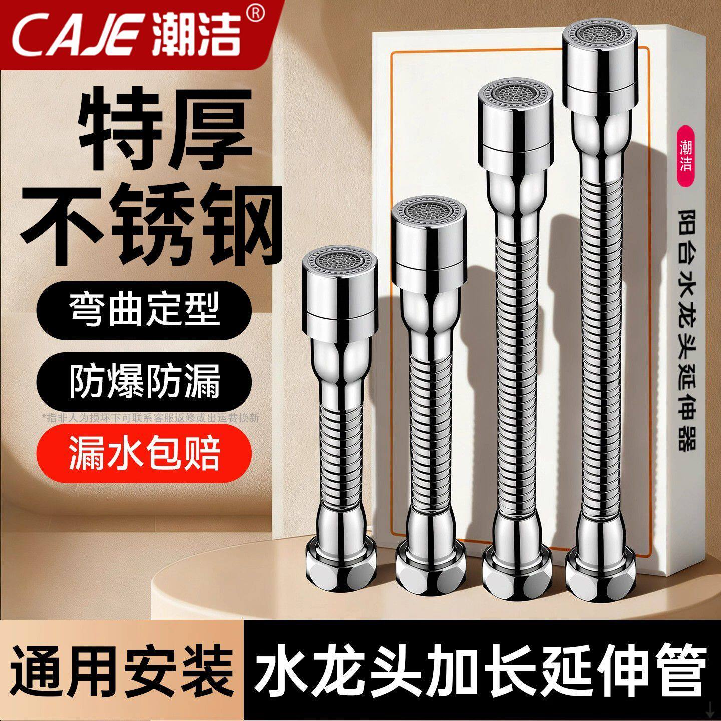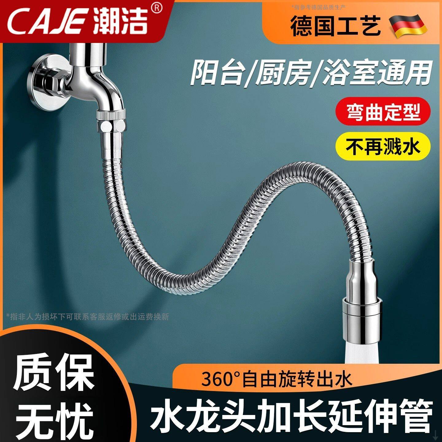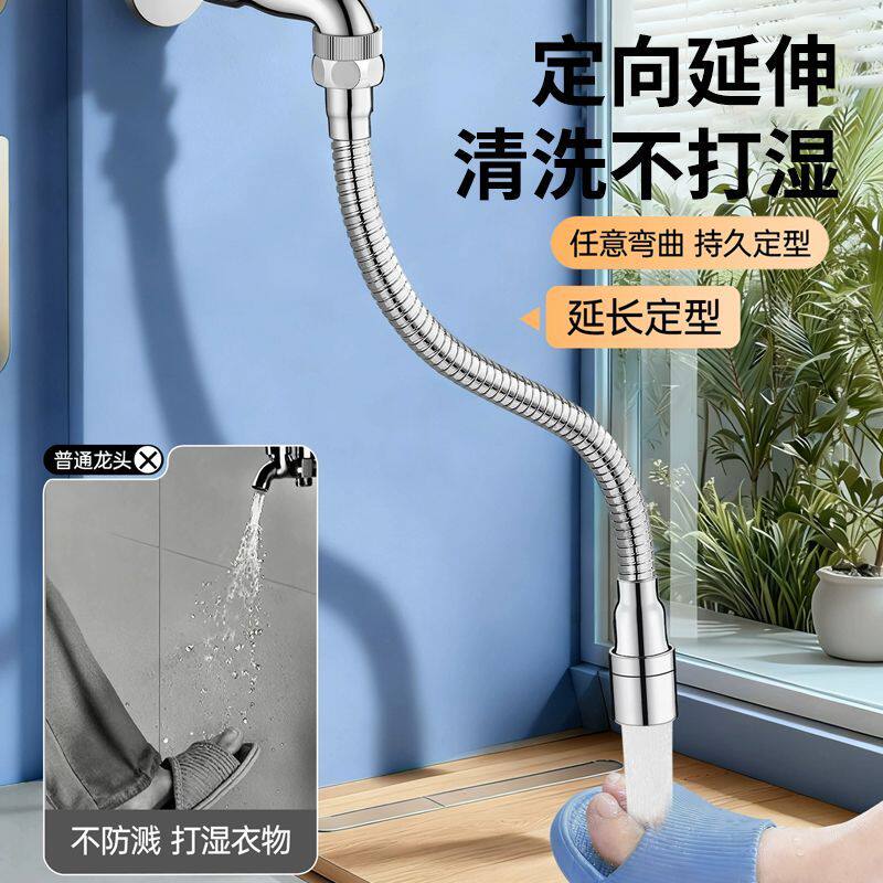 潮洁德国厨房水龙头加长水管通用不锈钢防漏龙头万向旋转延伸器