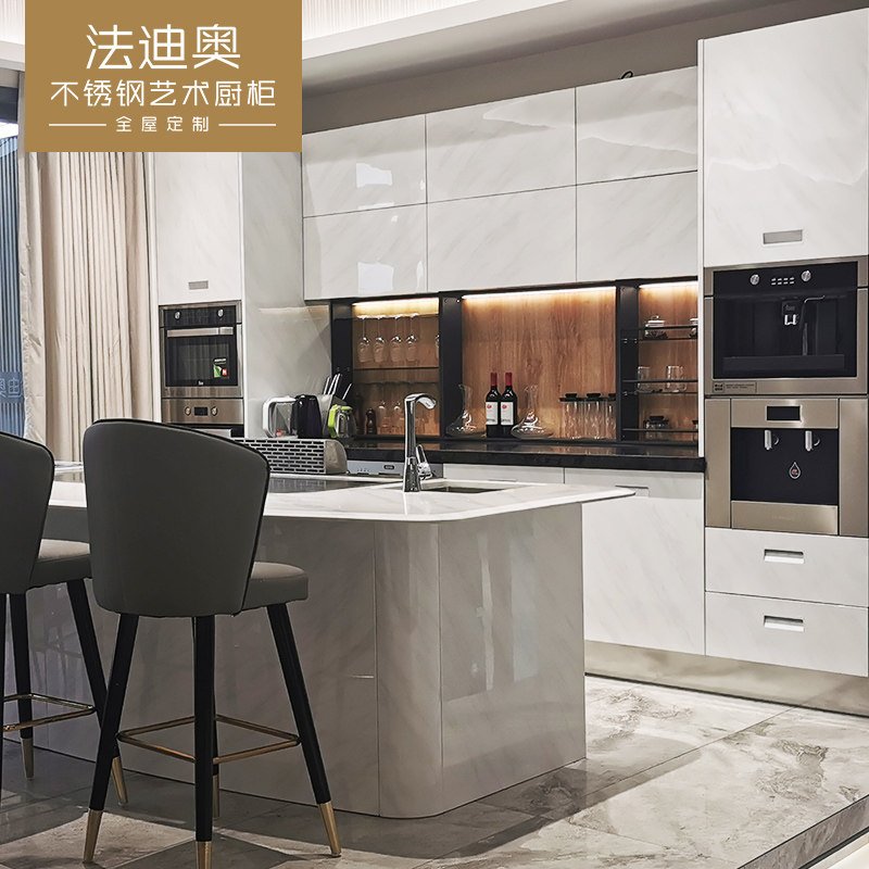 法迪奥全屋定制不锈钢橱柜工业商用厨房橱柜整体订制开放式简约