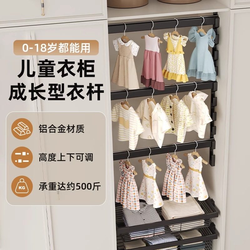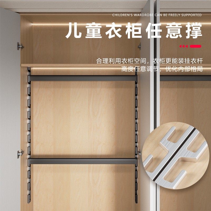 铝合金儿童衣柜挂衣杆任意撑可调节高度衣通杆活动成长型升降衣架
