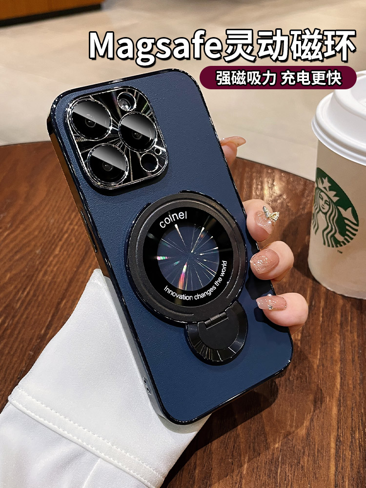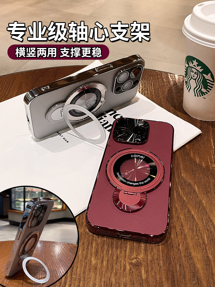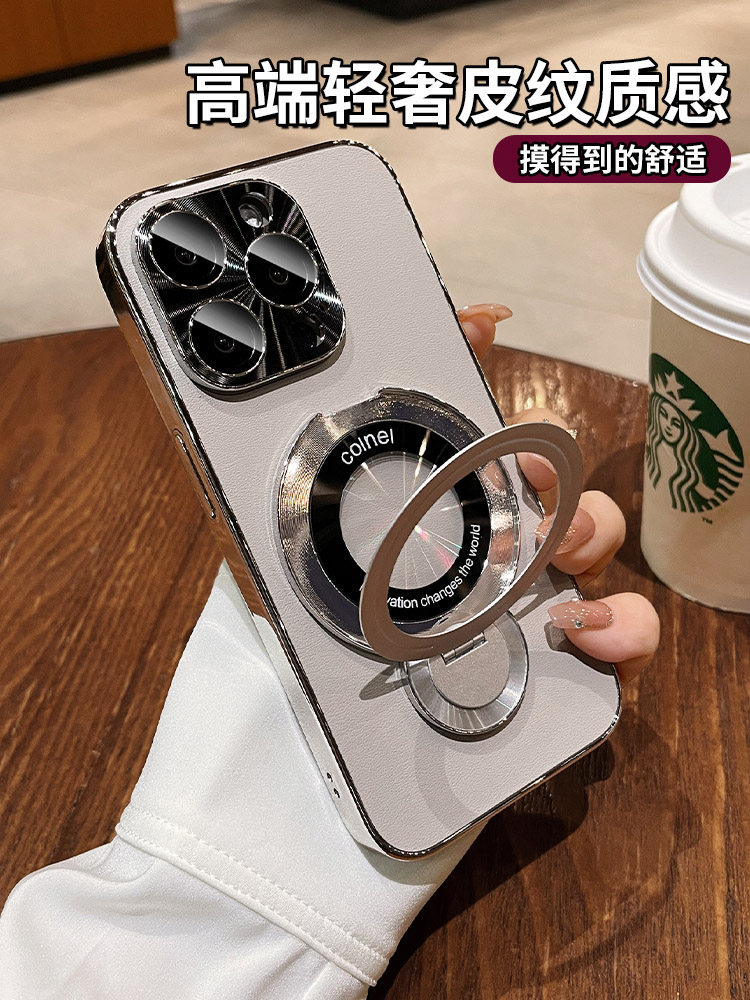 高级感皮纹磁吸支架适用苹果16手机壳新款iphone17Promax自带镜头膜13pro防摔保护套15por情侣男14时尚12外套