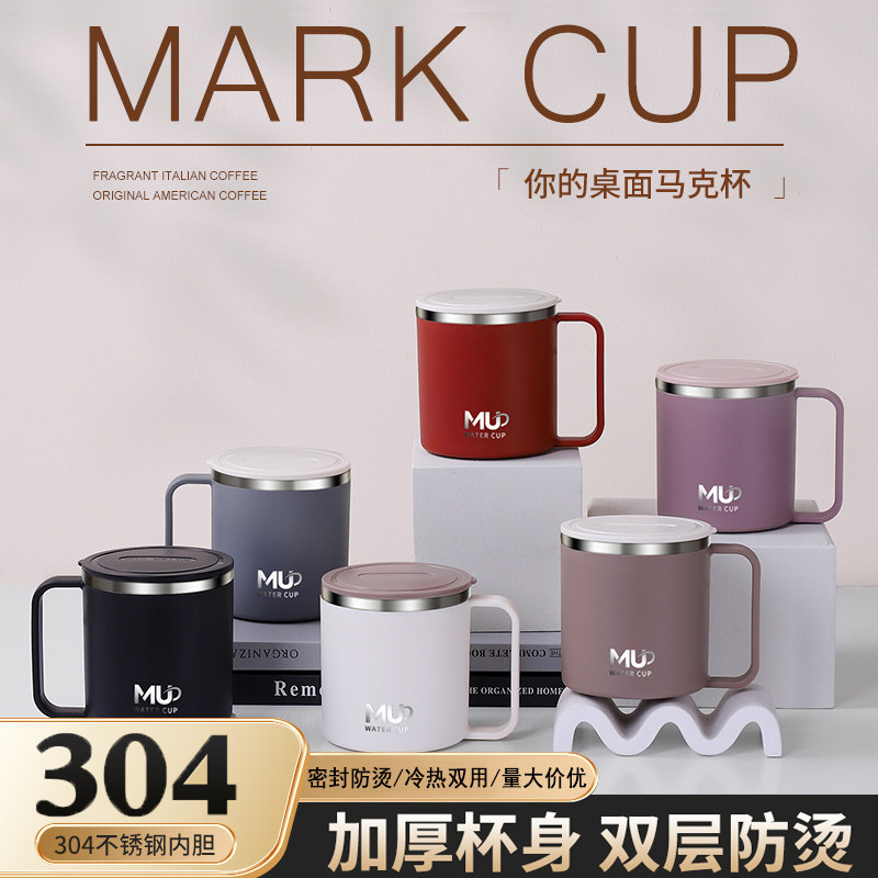 马克杯不锈钢防摔带盖学生宿舍加厚牛奶杯男女家用水杯办公咖啡杯