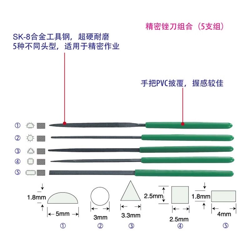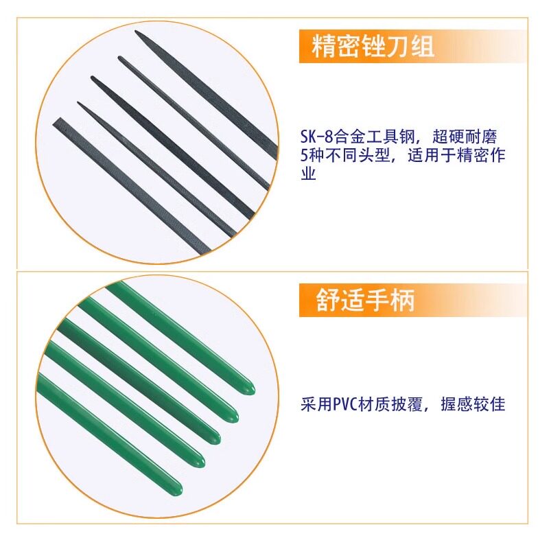 宝工8PK-605A手动工具锉刨什锦锉精密锉组半圆方扁锉三角锉605L