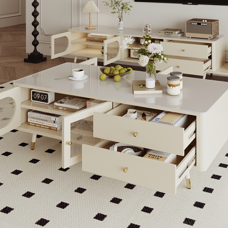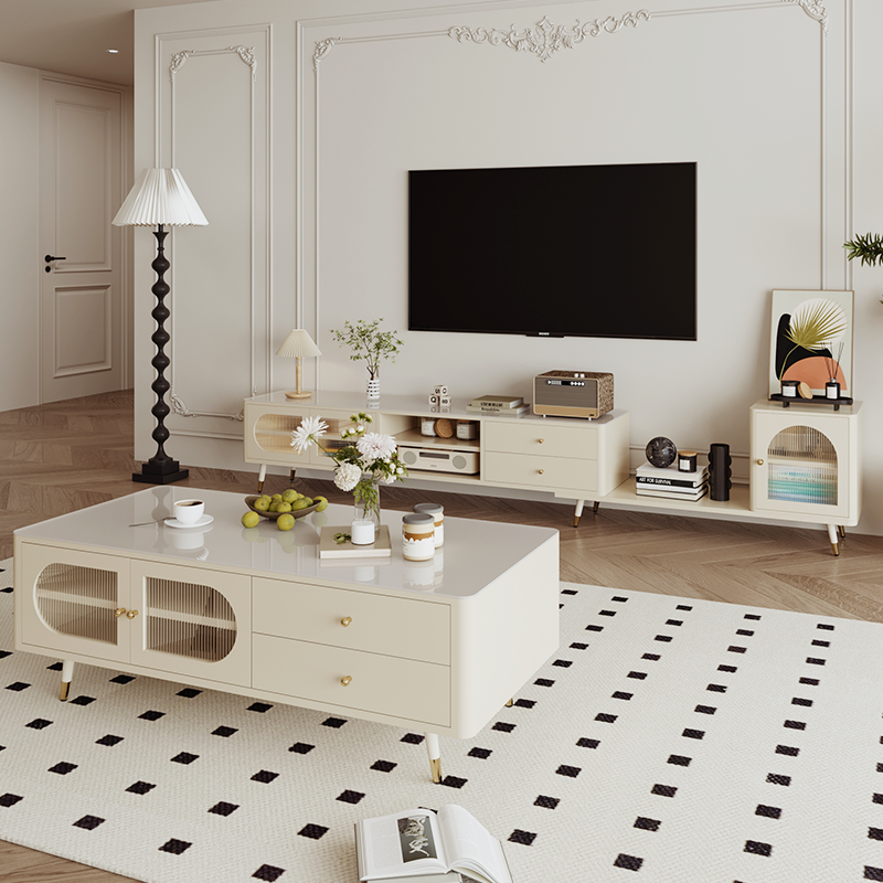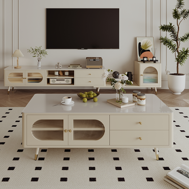 奶油风钢制茶几大容量电视组合柜轻奢家用客厅地柜收纳储物柜加厚