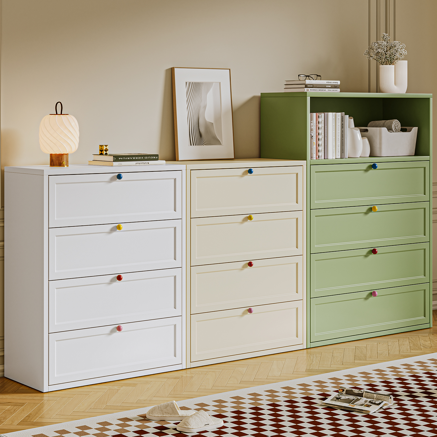 奶油风铁艺斗柜储物柜玄关柜子抽屉柜收纳柜法式边柜角落置物柜