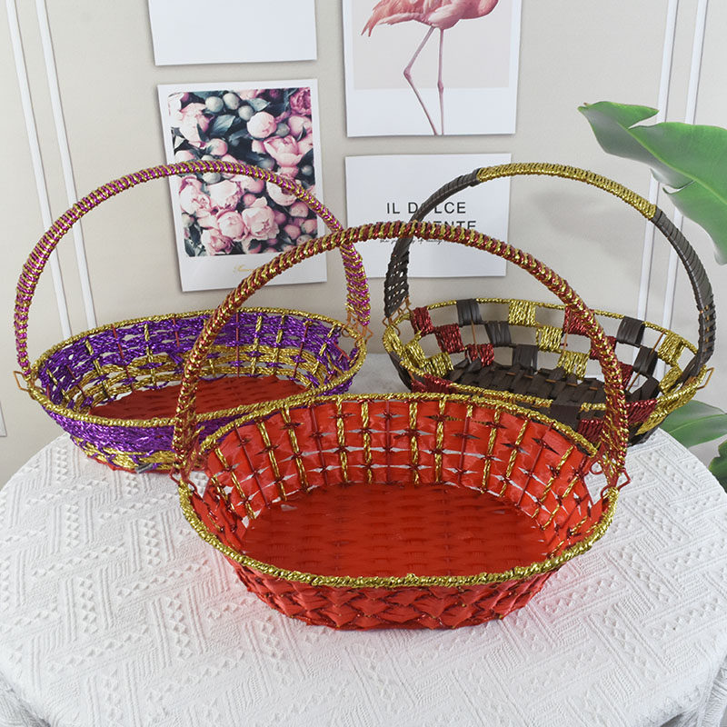 手提藤编伴手礼篮中秋节礼品包装篮仿编织水果篮采摘收纳野餐篮