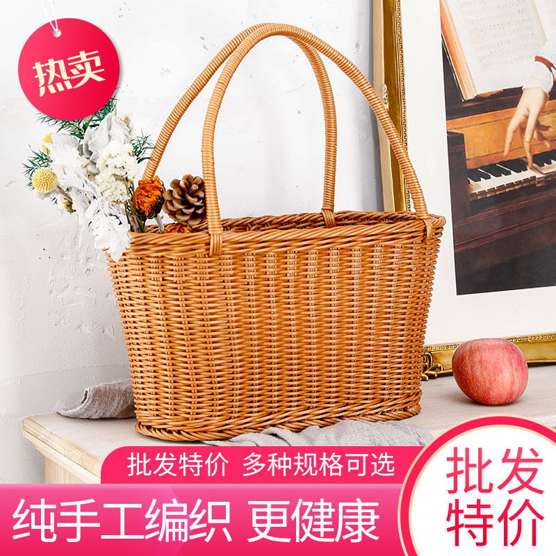 仿藤编洗澡手提篮超市购物糖果蔬面包椭圆整理加深储物编织收纳筐