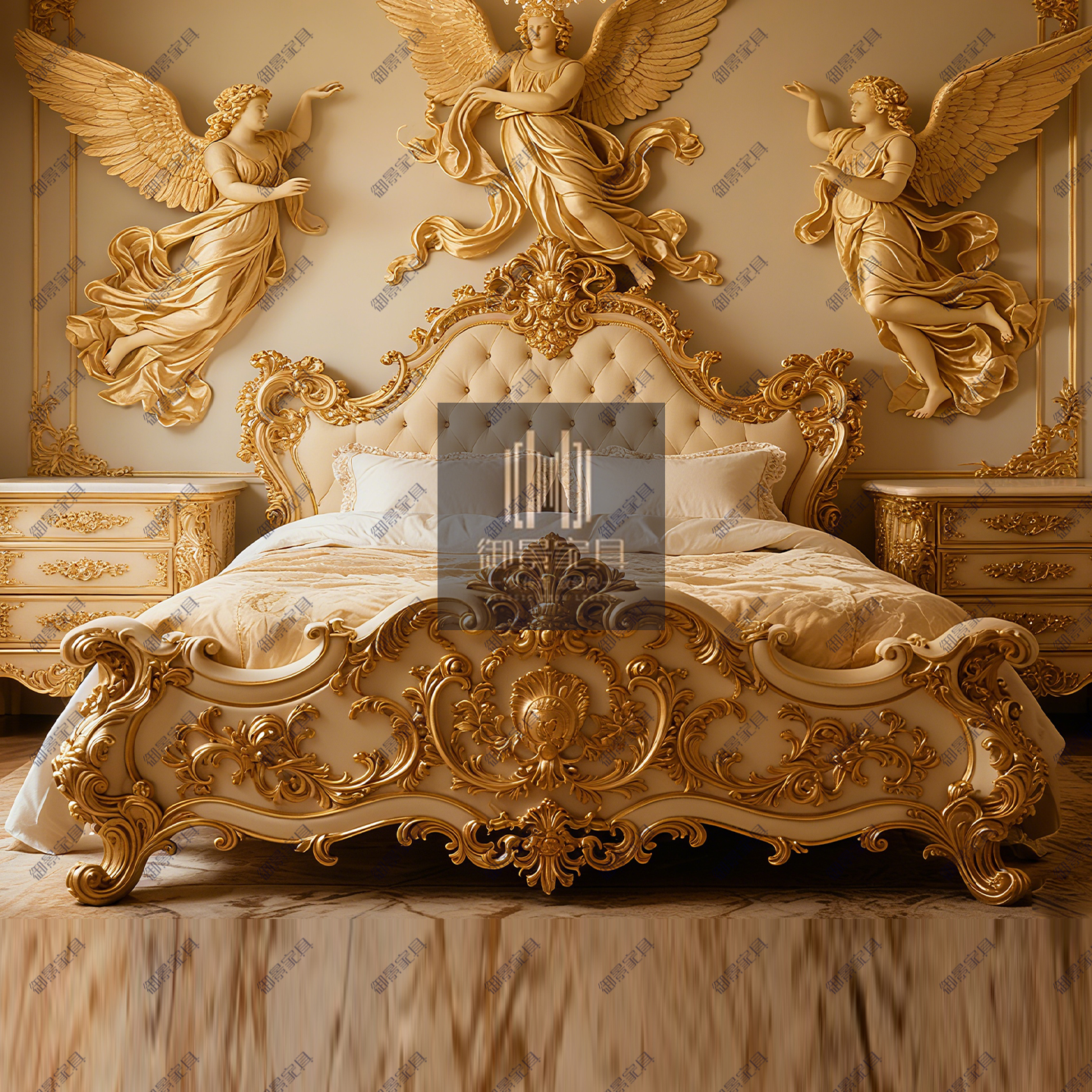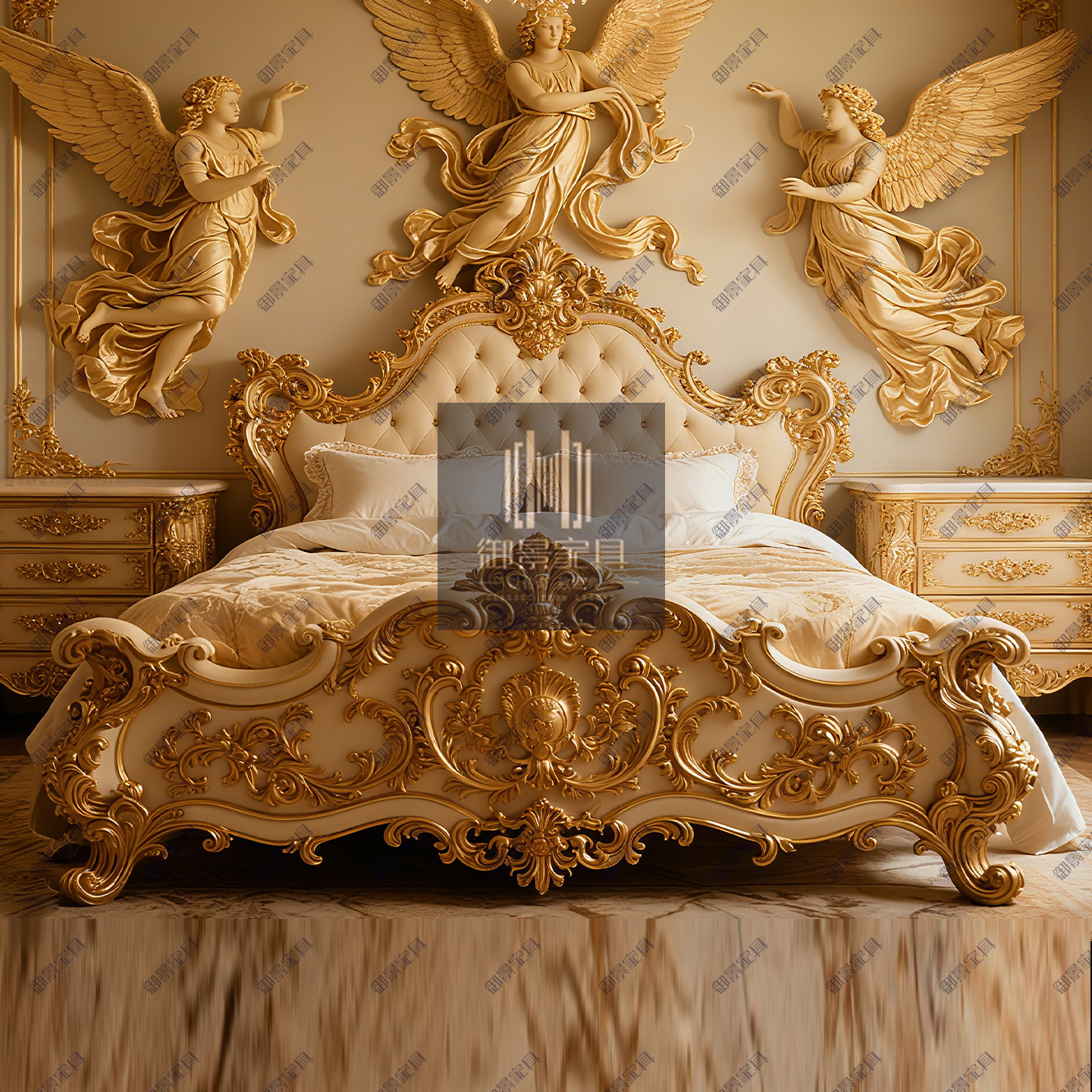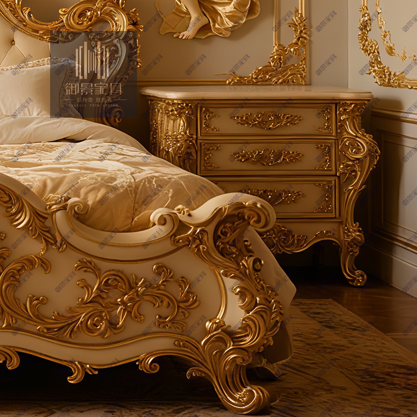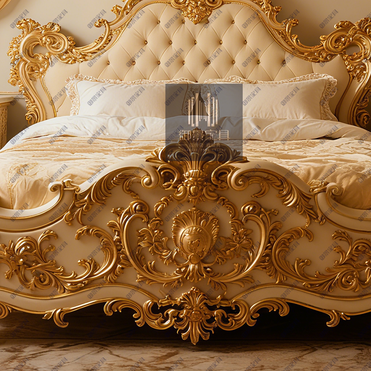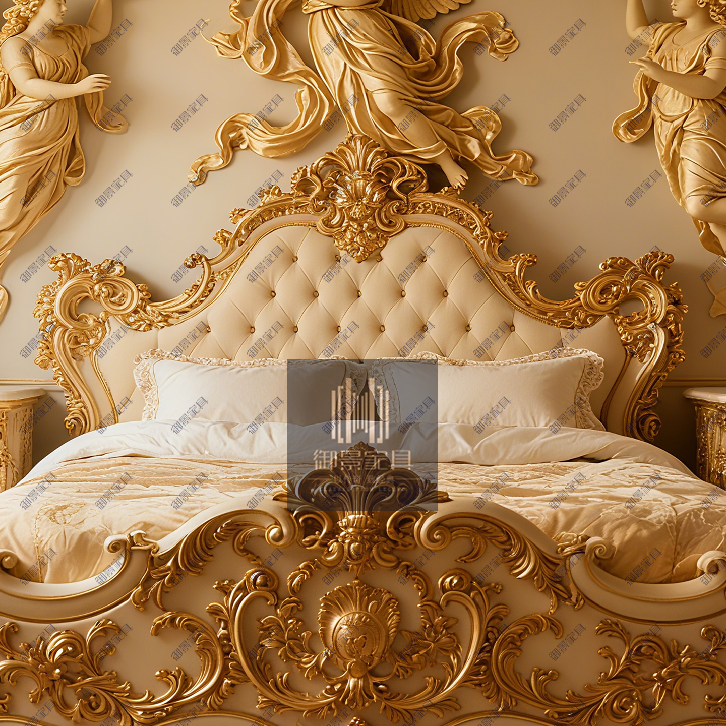 法式巴洛克实木双人床欧式雕花金箔烤漆亮光真皮床公主床住宅家具