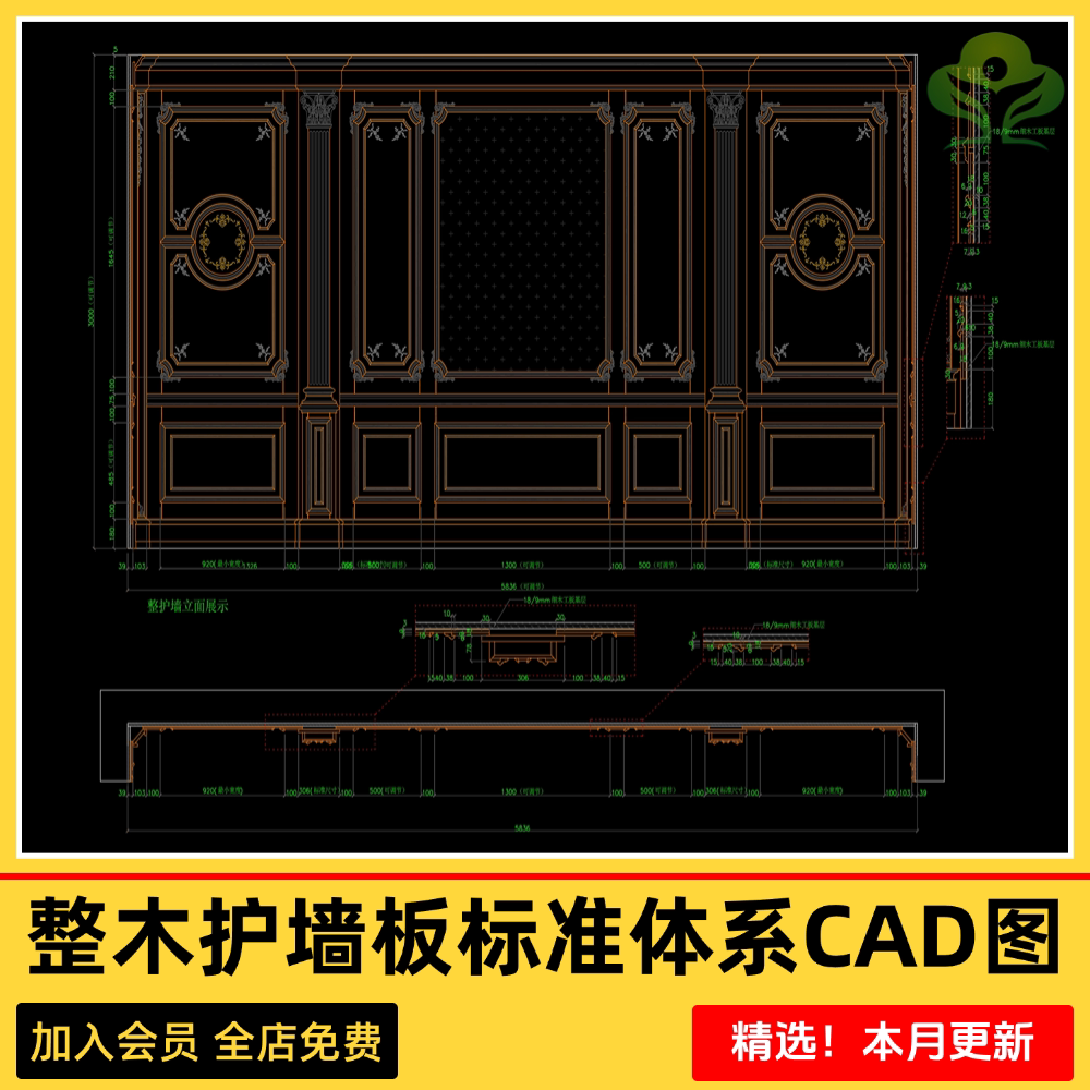 全屋定制家具整木原木实木定制护墙板标准体系套件CAD图库素材