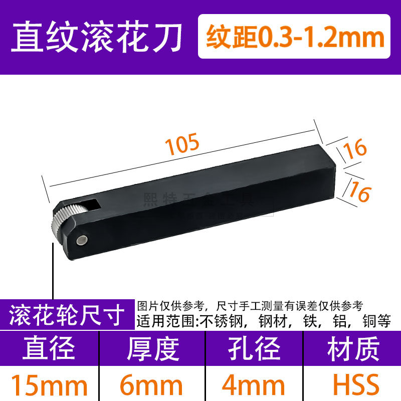 HSS直纹滚花刀12方16方刀柄走心机小刀柄纹距0.3-1.2小车床压花刀