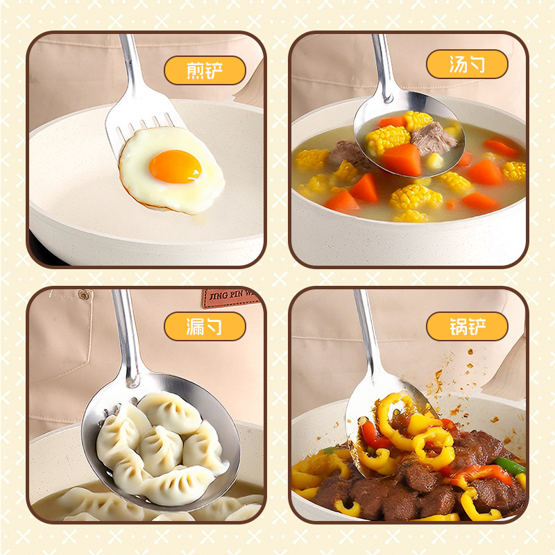 不锈钢锅铲家用炒菜铲子全套铲勺套装汤勺漏勺厨房烹饪用具煎铲