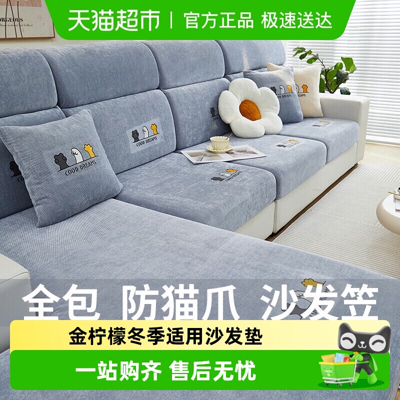 金柠檬居家布艺雪尼尔沙发套罩防猫抓全包萬能四季通用防滑沙发垫
