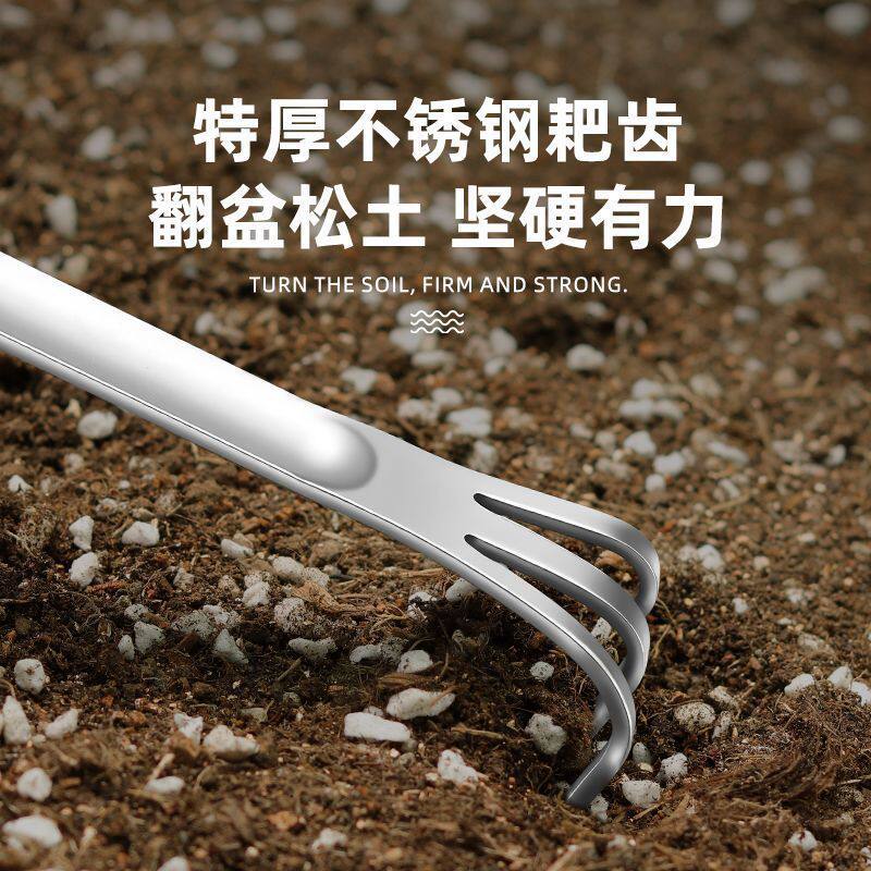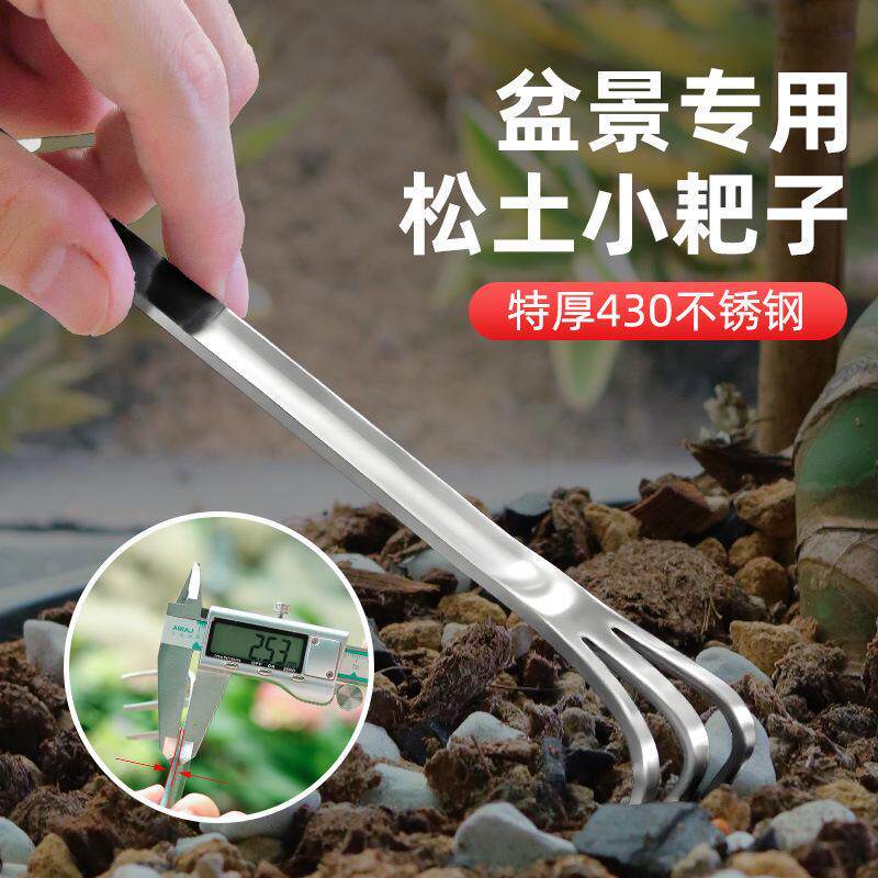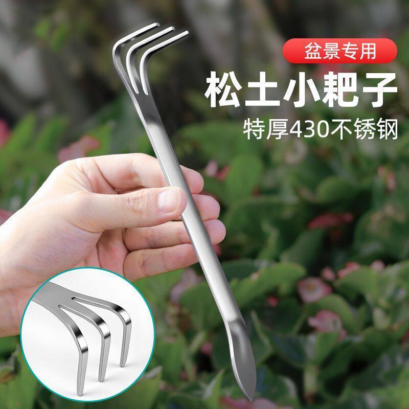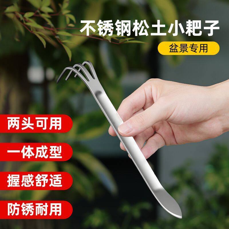 盆景耙子家用不锈钢手耙双头压土刀摘芽手工盆景制作工具松土神器