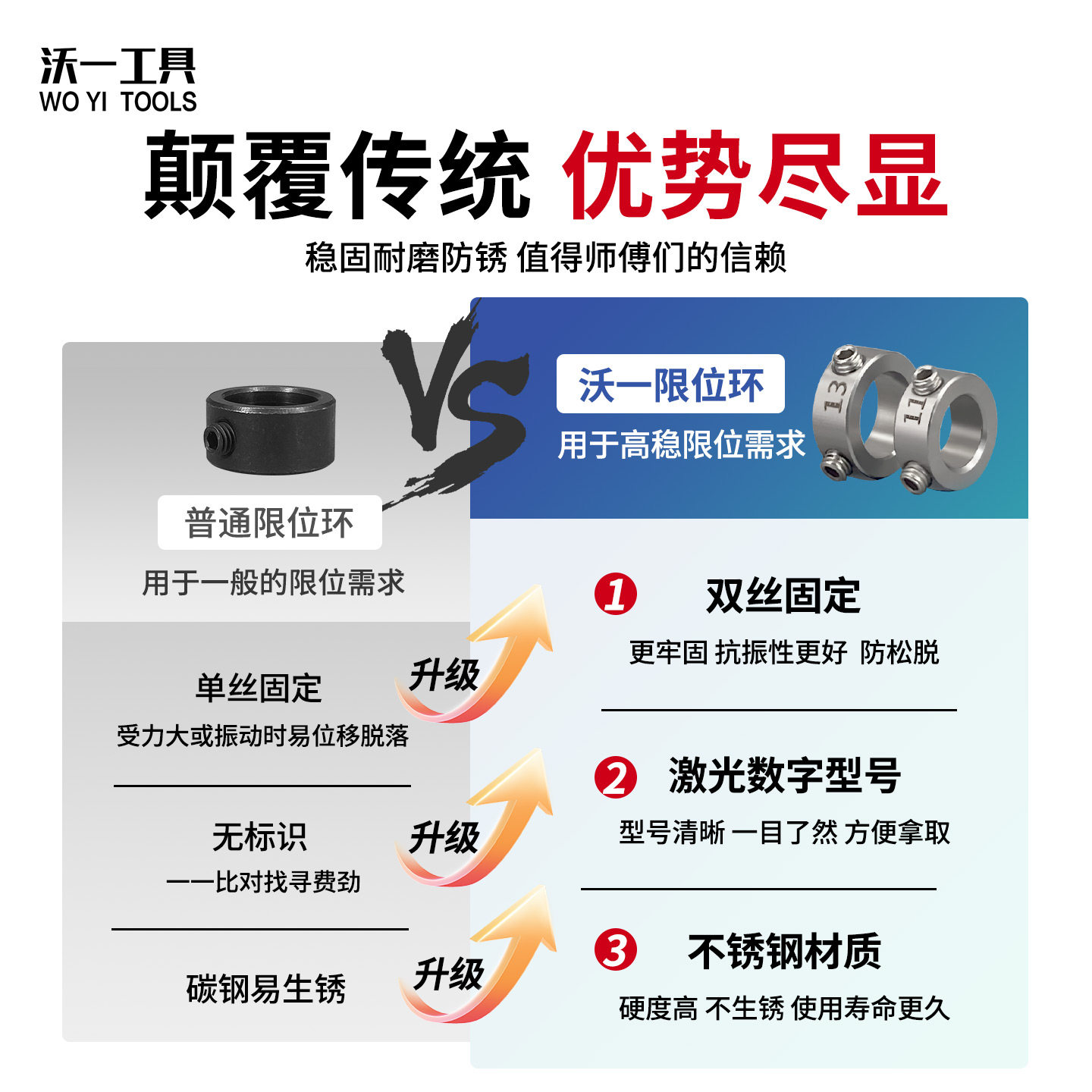 沃一工具不锈钢双丝限位环双孔顶丝固定环防锈锁紧钻头止退环挡圈