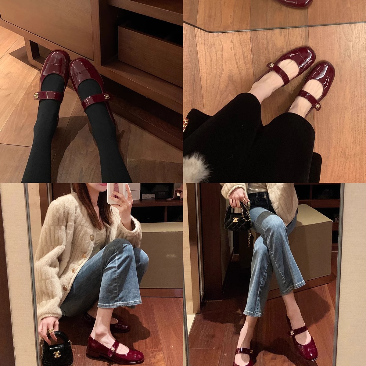 六点大叔 真皮 小香风玛丽珍鞋女一字扣平底单鞋粗跟小皮鞋乐福鞋