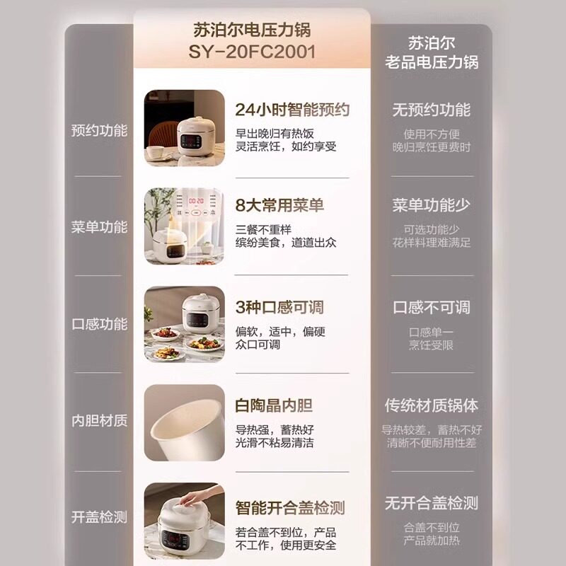 苏泊尔电压力锅家用2L小型全自动智能迷你多功能高压饭煲2025新款