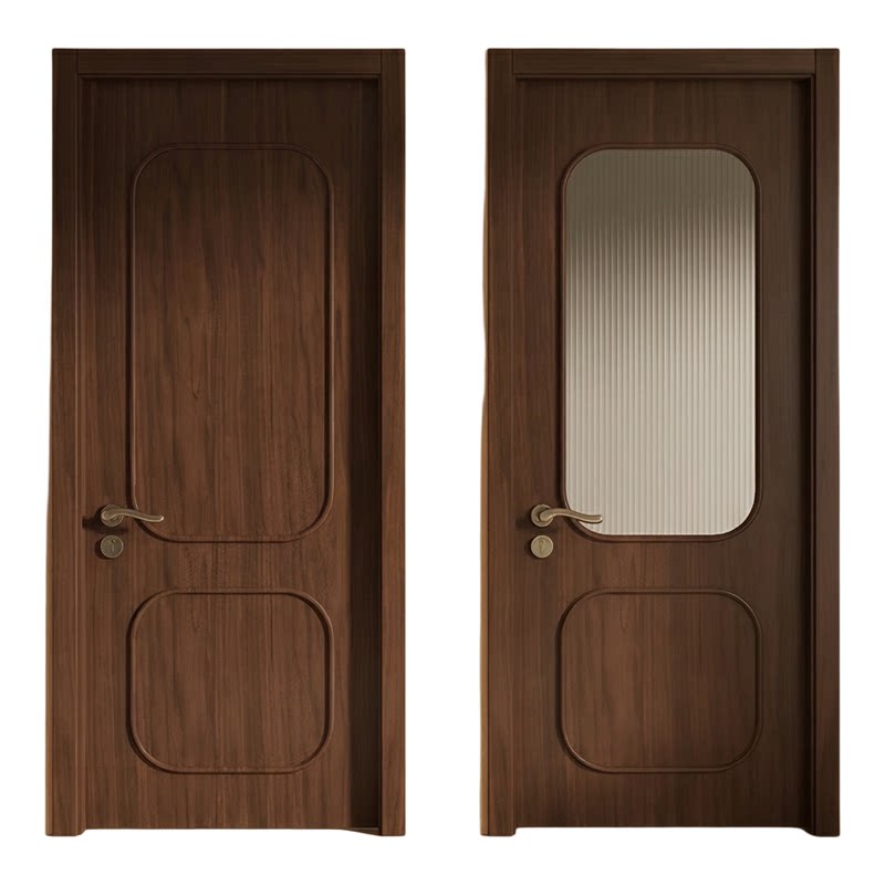 法式中古风卧室门实木烤漆胡桃木色室内房间平开玻璃门定制新中式