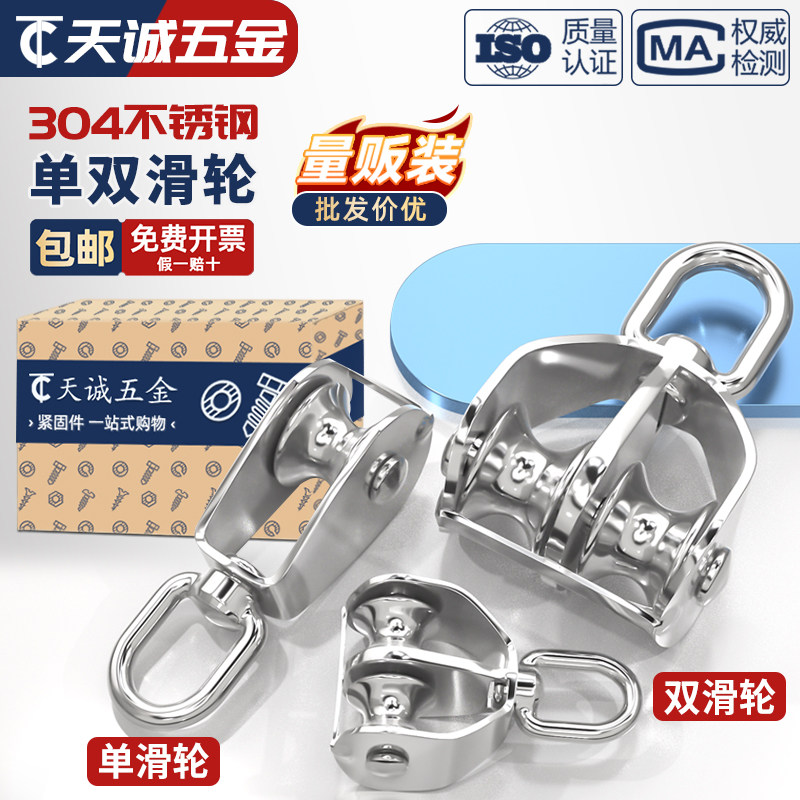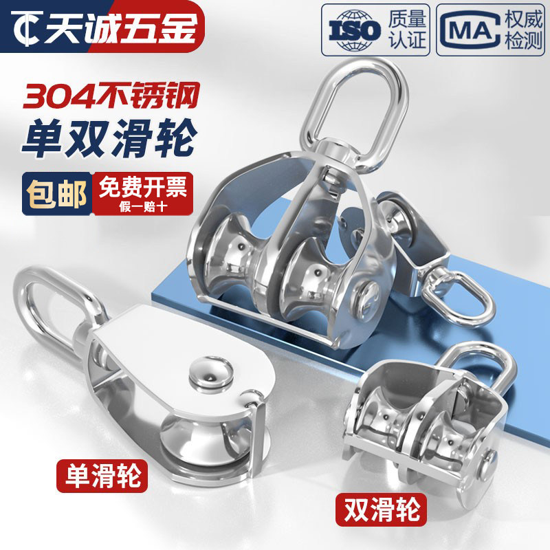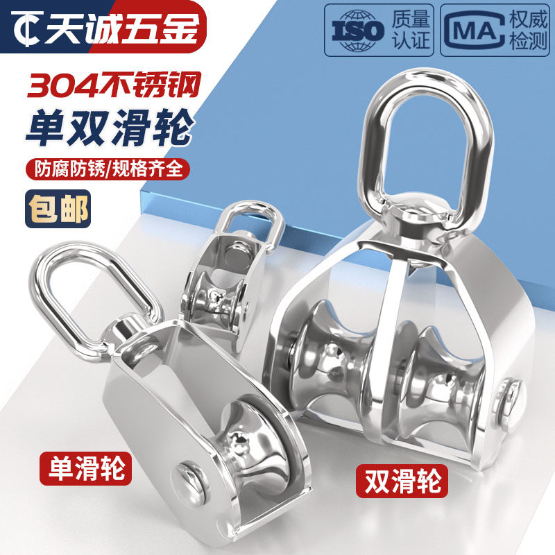 304不锈钢滑轮钢丝绳U型吊环定滑轮单双轮子起重滑轮吊钩省力工具