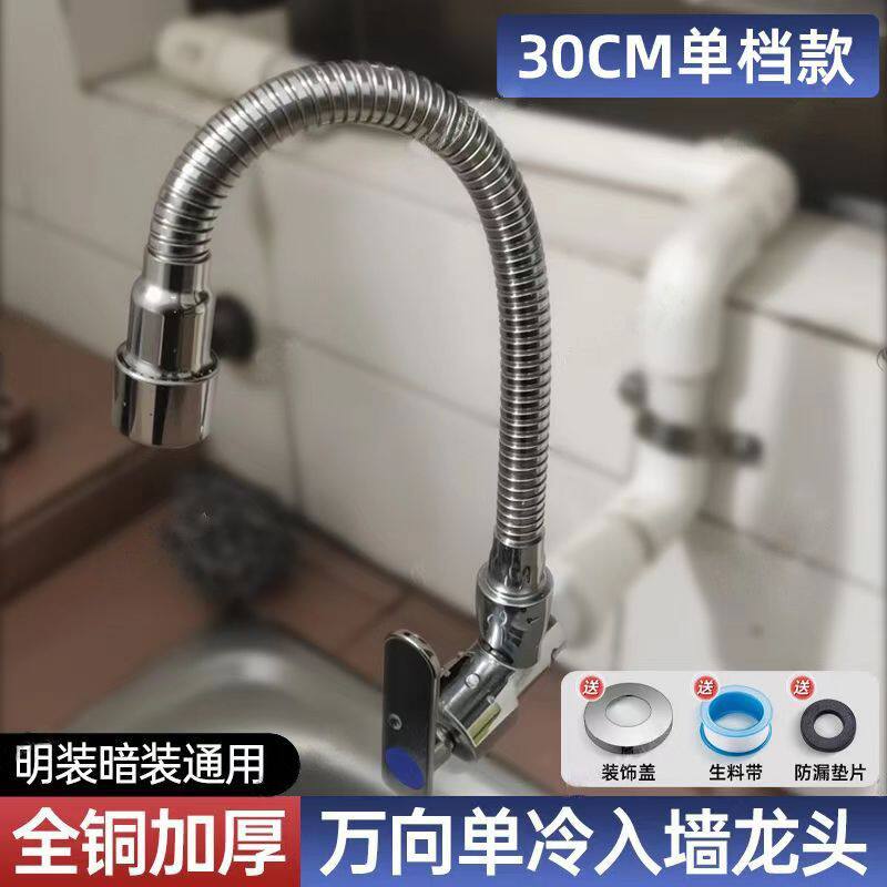 入墙式单冷厨房水龙头万向旋转龙头多功能家用伸缩式洗衣机水龙头