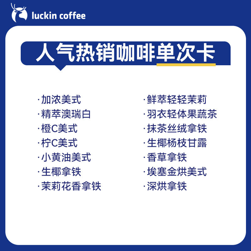 【瑞幸咖啡 官方正品】人气严选·人气热销咖啡单次卡电子优惠券