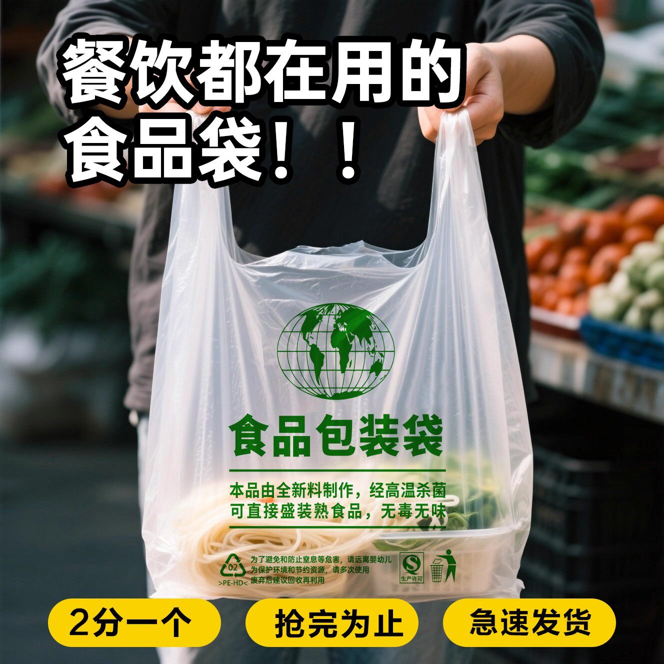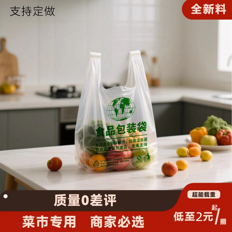 外卖食品级打包袋加厚背心式包装塑料袋超市透明购物袋方便手提袋