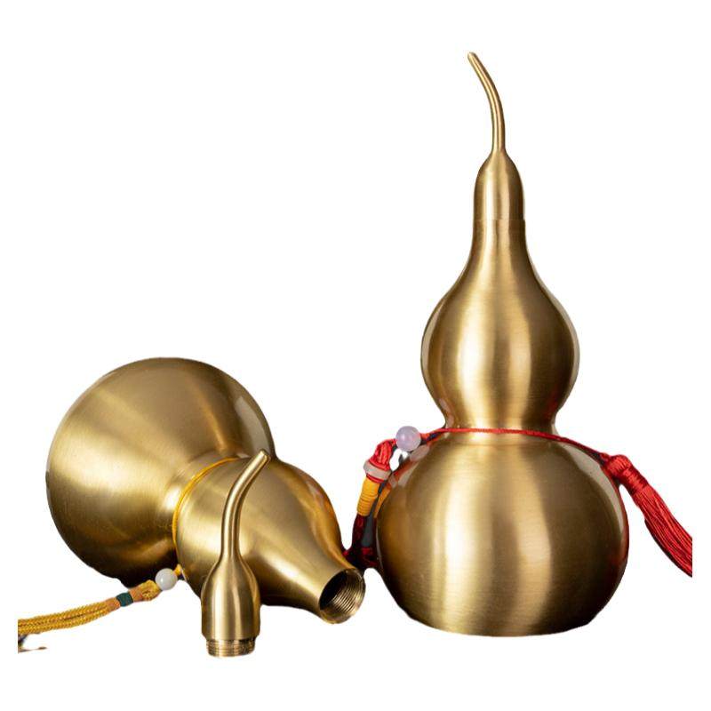 纯黄铜葫芦小摆件开口空心八卦铜葫芦大号挂件客厅车载家居装饰品