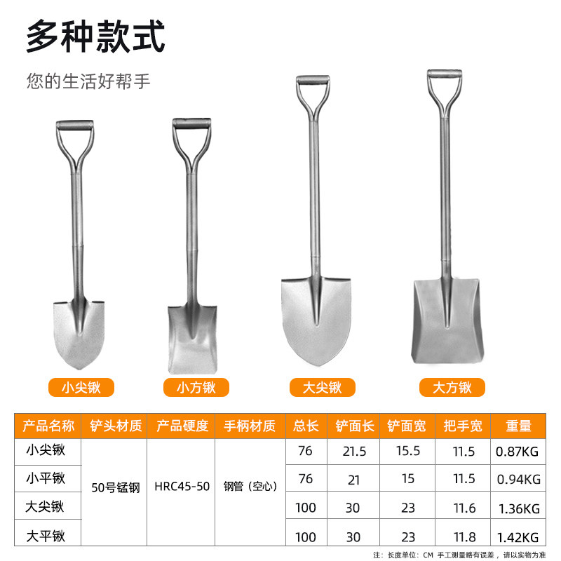 德国精工全锰钢铁锹挖土家用种菜神器加厚工具一体户外铲子多功能