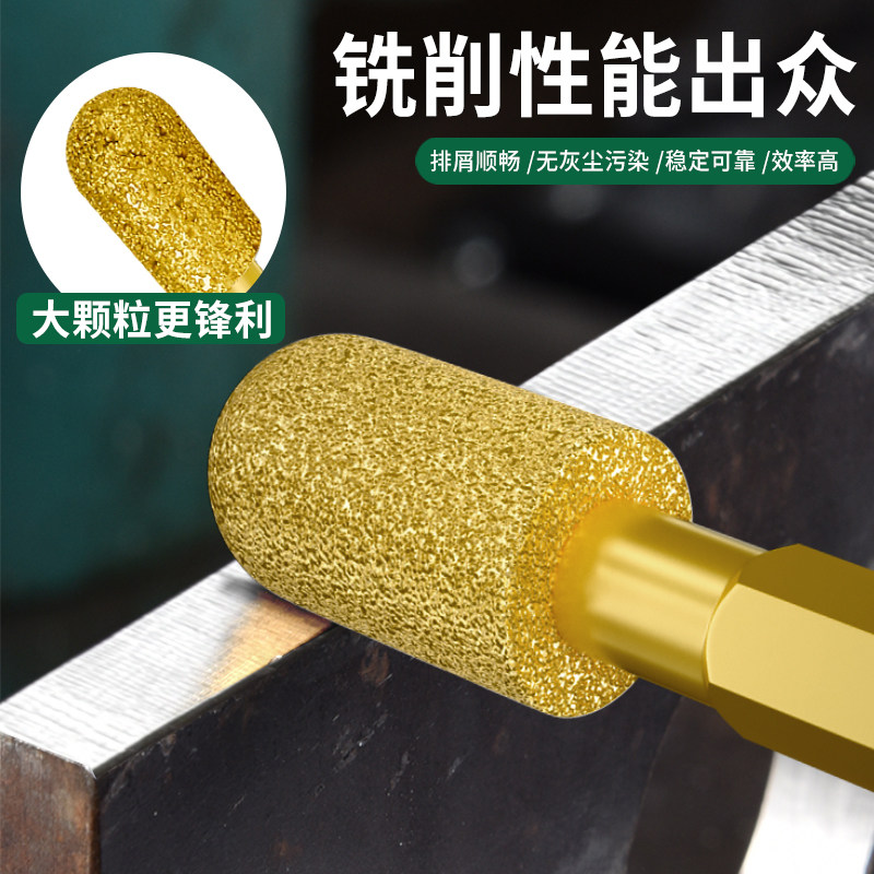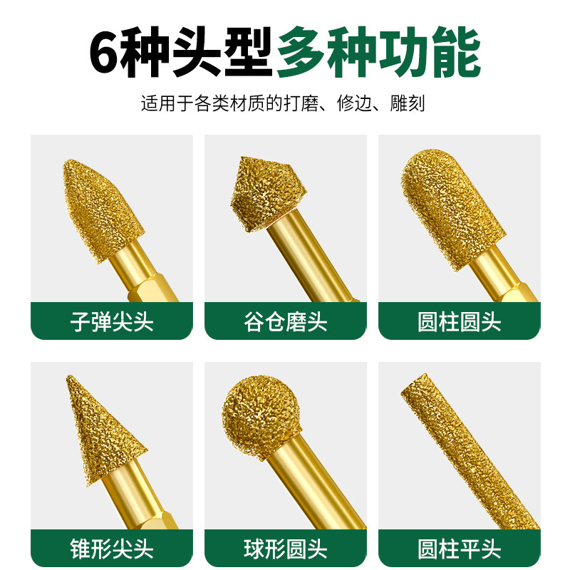 金刚石磨头六角柄硬质合金旋转锉铸铁石材手电钻铣刀钎焊打磨神器