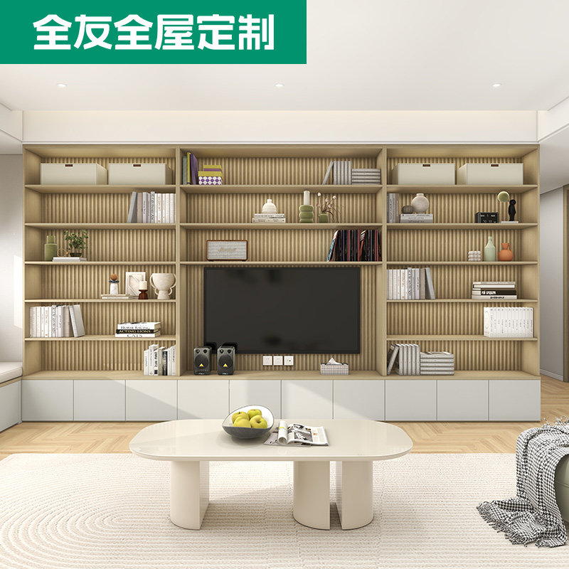 全友全屋定制电视柜客厅背景墙一体满墙悬挂式电视机柜收纳储物柜