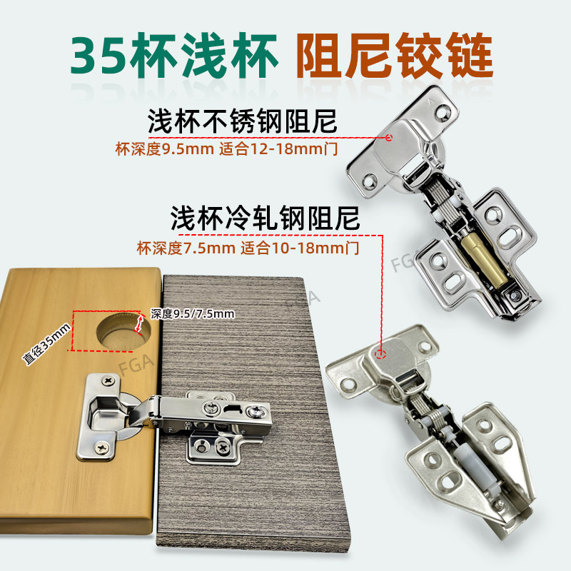8-14mm薄门板专用铰链 35开孔深度7.5mm浅杯12板阻尼柜门铰链合页