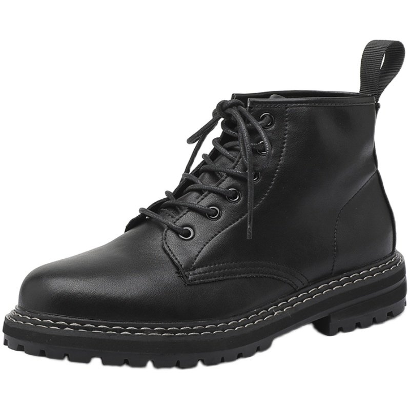 马丁靴男英伦风中帮增高秋冬加绒工装切尔西靴透气黑色高帮皮鞋潮
