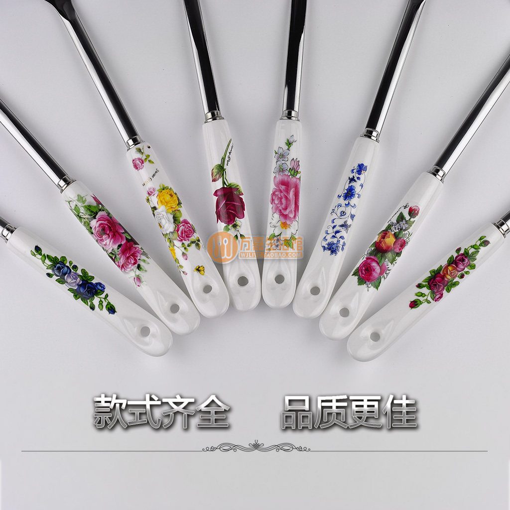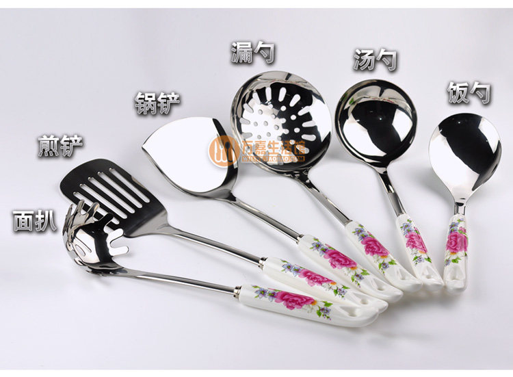 不锈钢厨具 陶瓷柄锅铲汤勺漏勺饭勺面扒打蛋器厨房烹饪用具散件