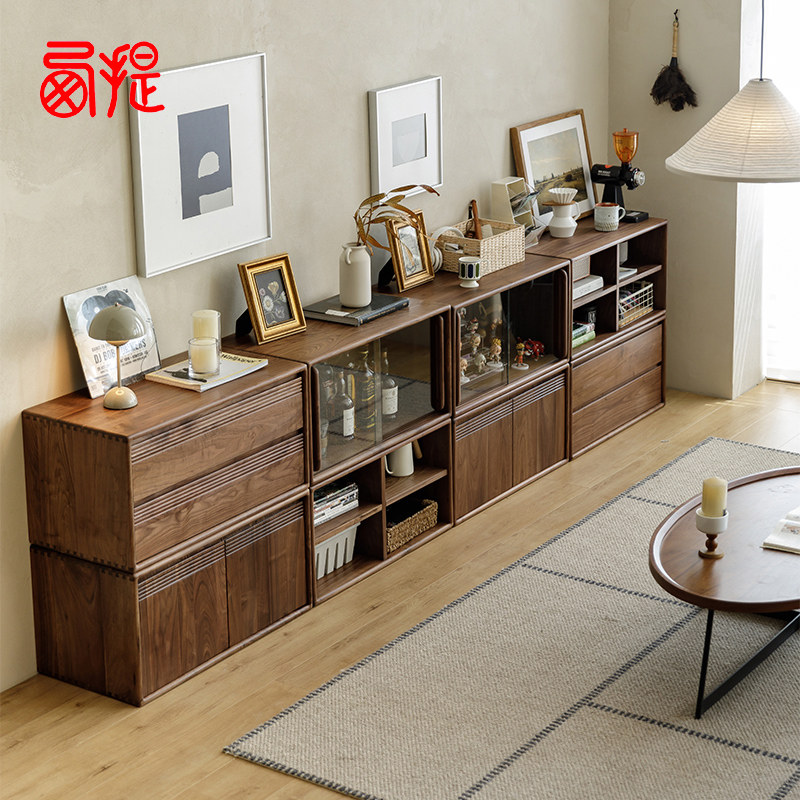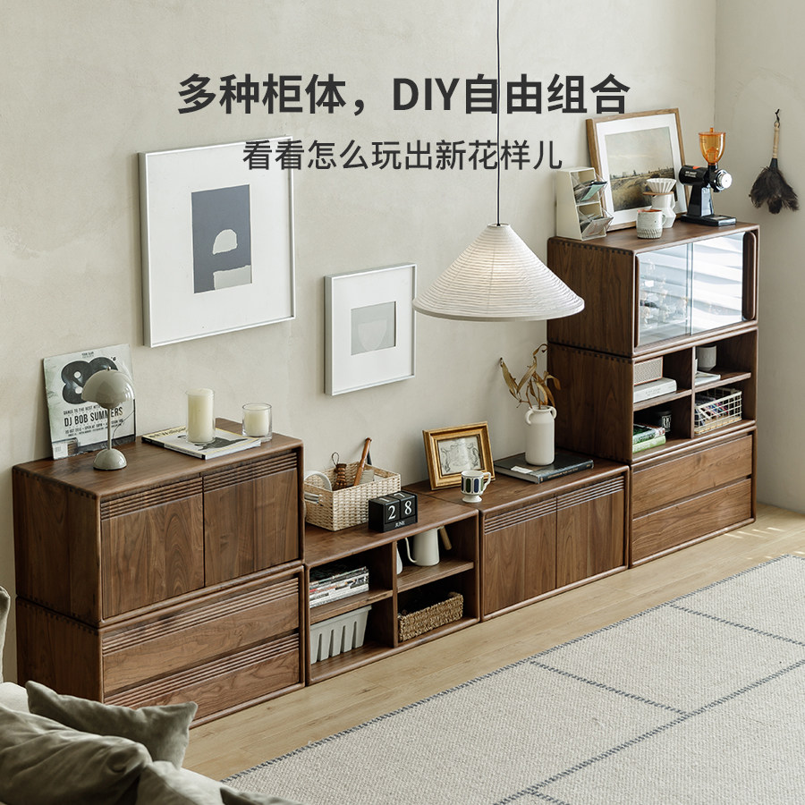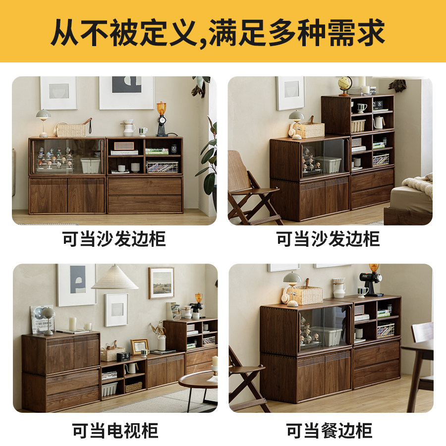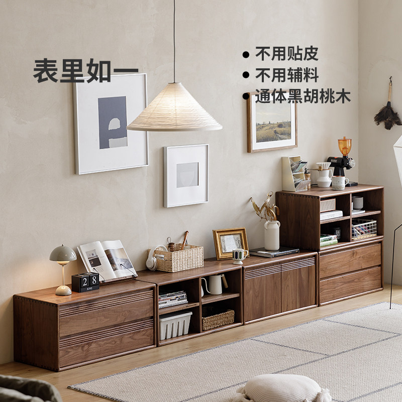 西提北美黑胡桃木实木组合柜沙发边柜模块柜书柜收纳柜矮柜电视柜