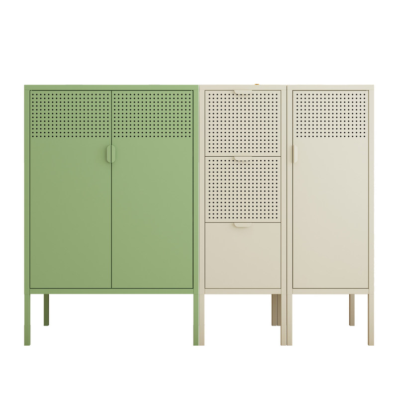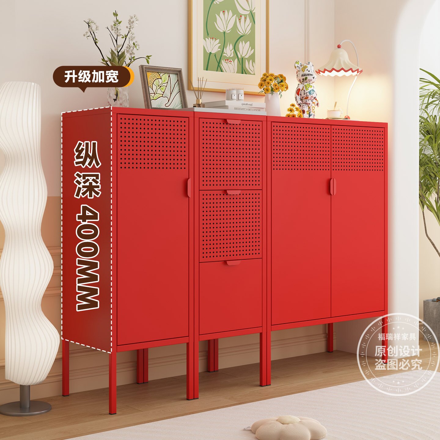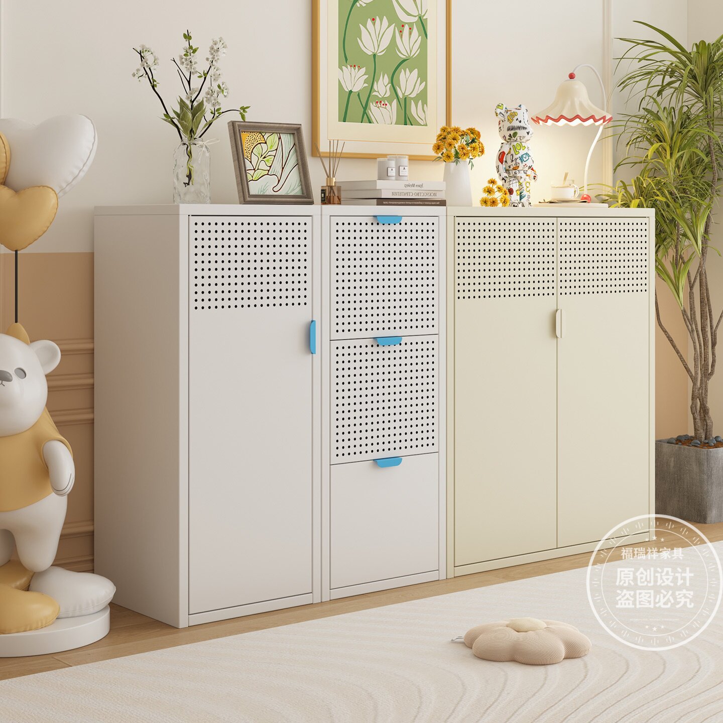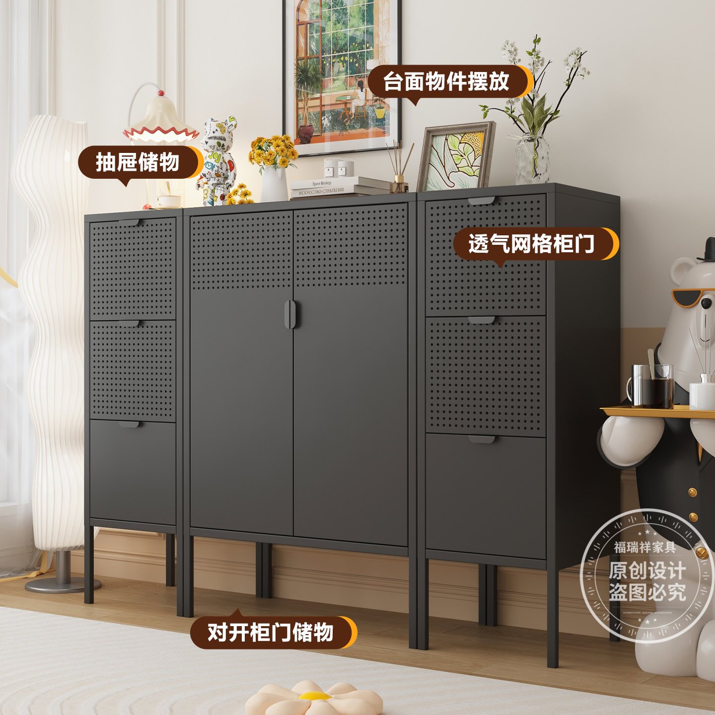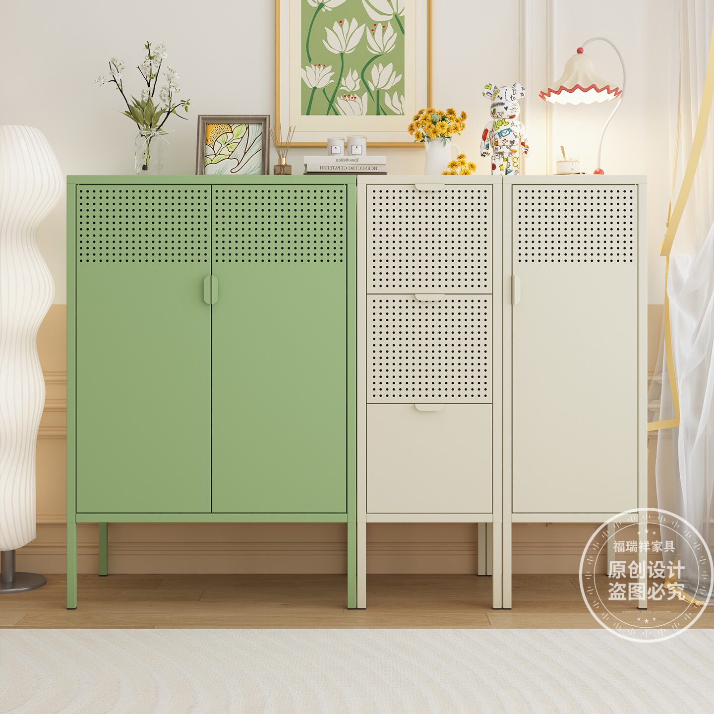 奶油风餐边柜金属储物柜收纳柜抽屉柜边柜置物柜橱柜加厚防晒通风