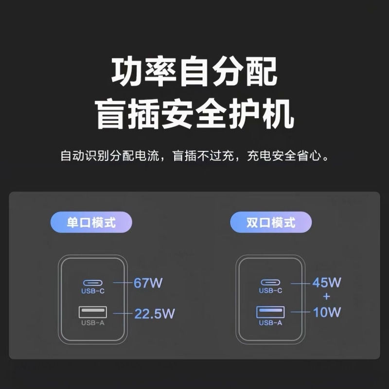公牛67W氮化镓充电器适用苹果安卓手机平板笔记本快充插头多口充电头