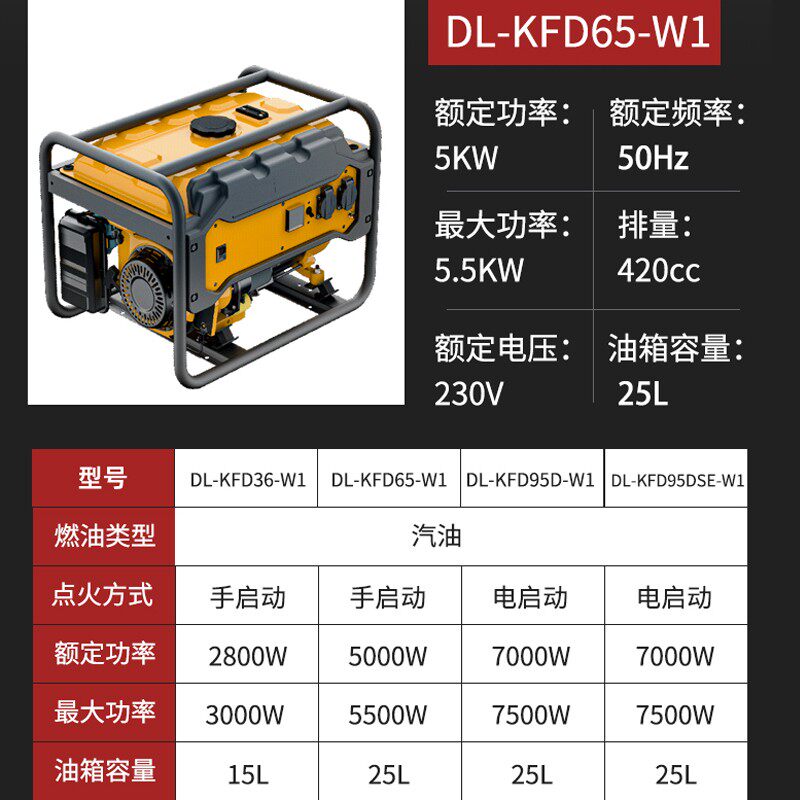 得力汽油发电机小型230V大功率5kw7kw单相三相户外低噪音发电工具
