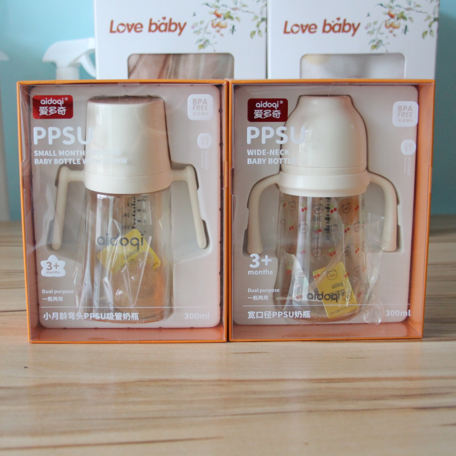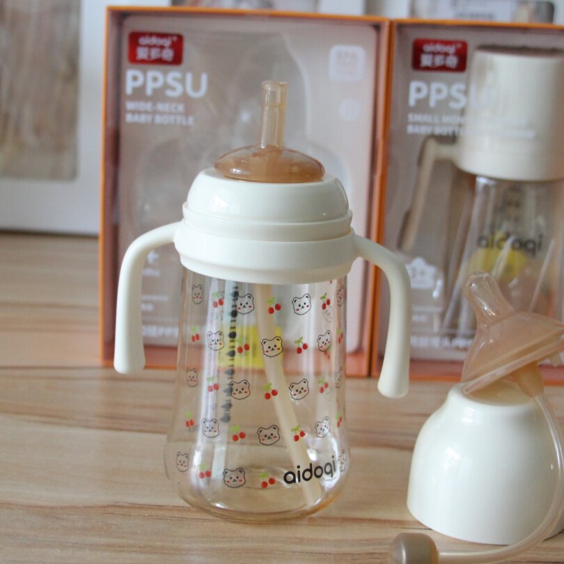 爱多奇新生婴儿宽口径ppsu奶瓶一岁以上宝宝300ml直饮吸管杯奶瓶