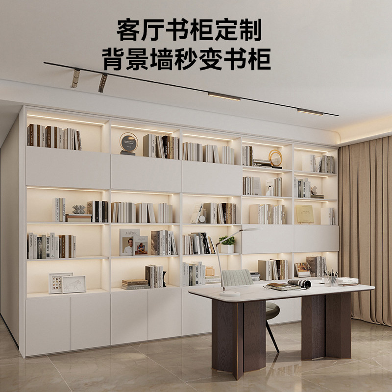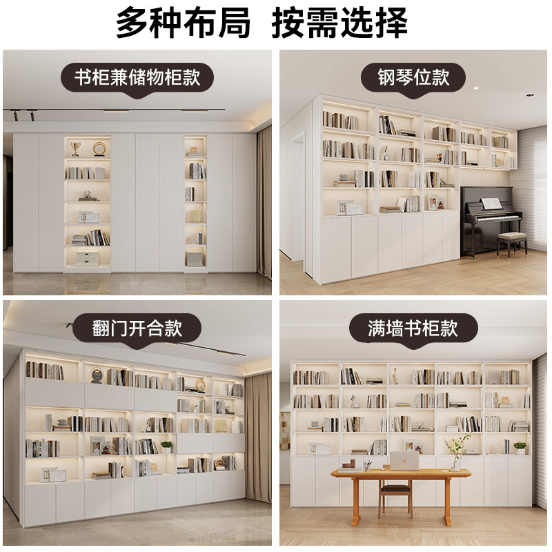 全友全屋定制书柜落地一体靠墙收纳柜客厅杂物储物柜子书架置物架