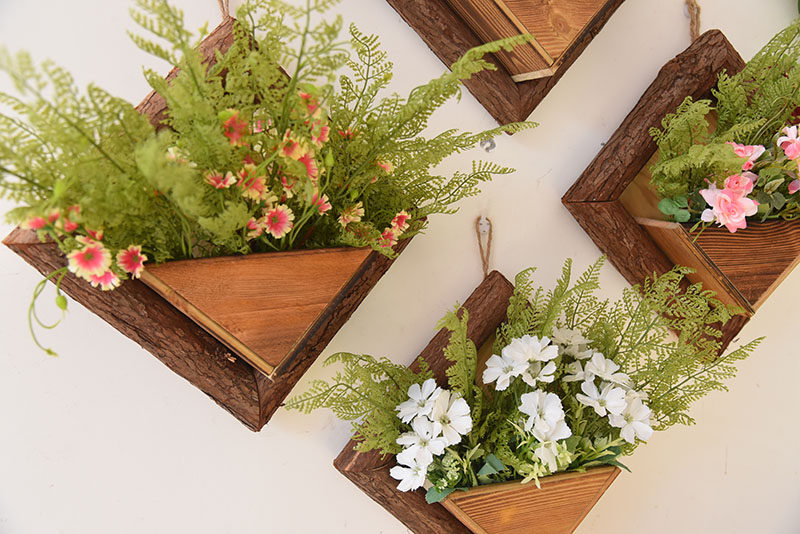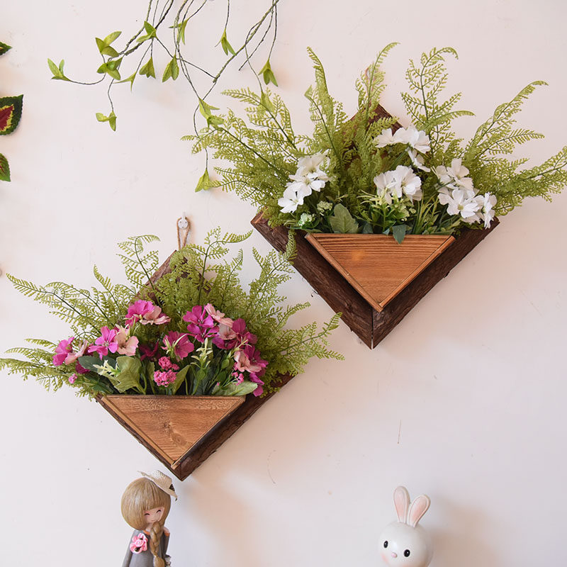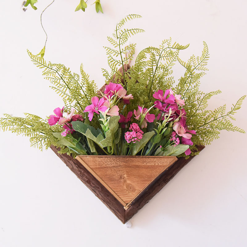 创意墙上花篮客厅 挂墙花篮室外装饰品壁挂式木质花篮挂墙