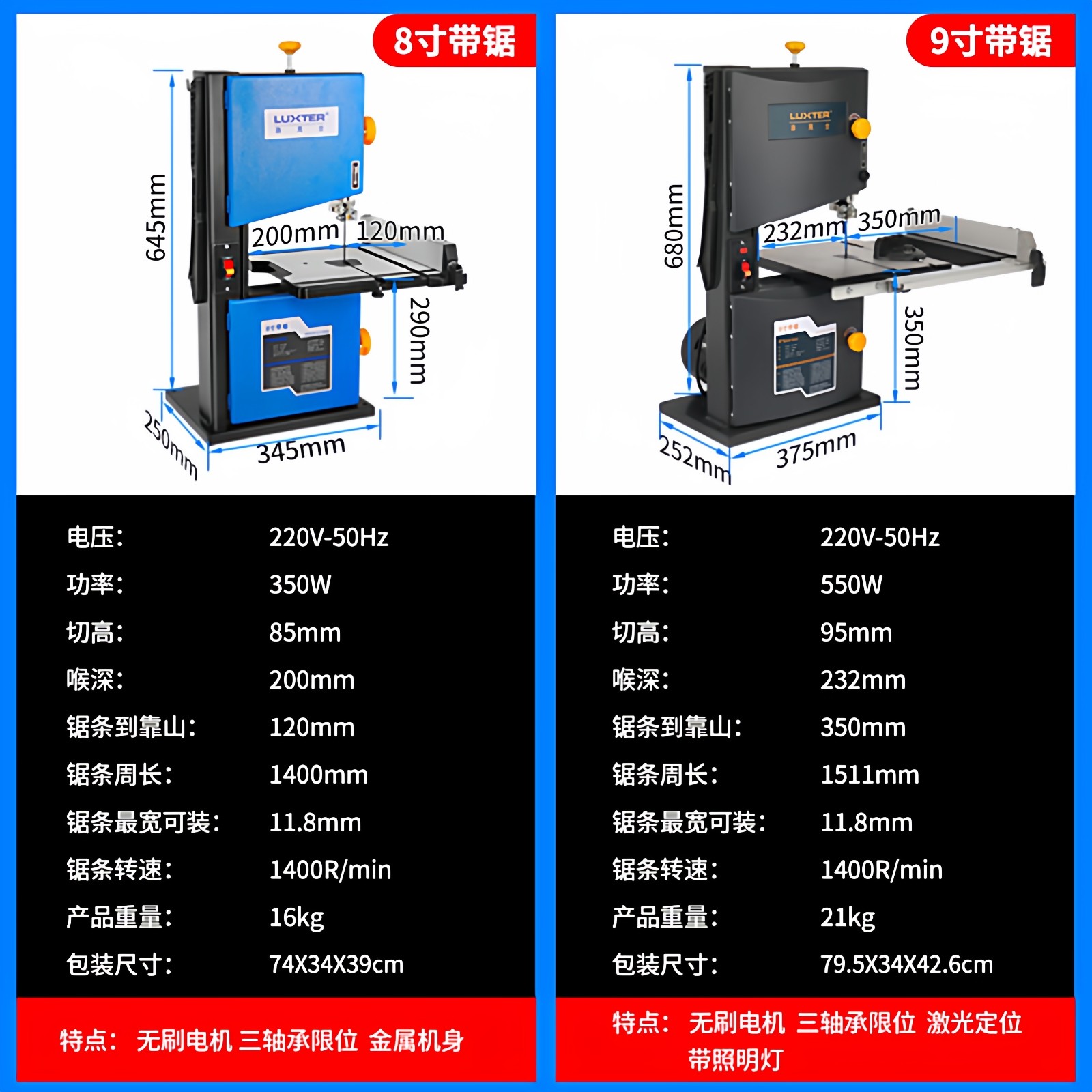 洛克士8寸9寸12寸木工带锯机家用线锯机曲线锯开料机立式切割机