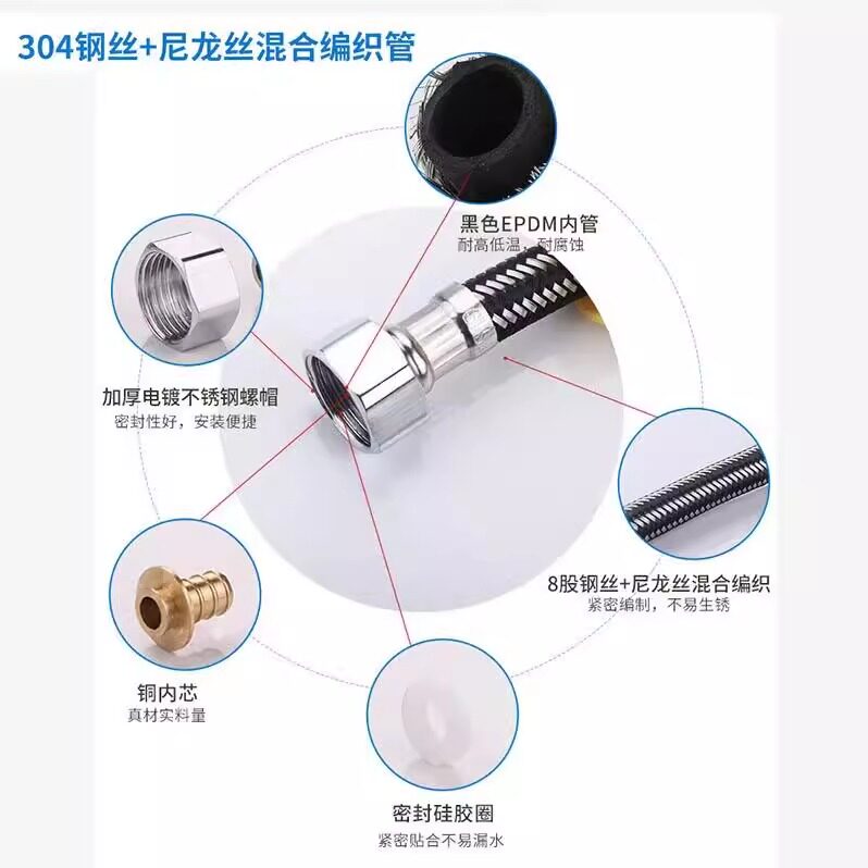 304不锈钢编织金属软管热水器马桶冷热进水软管4分家用高压防爆管