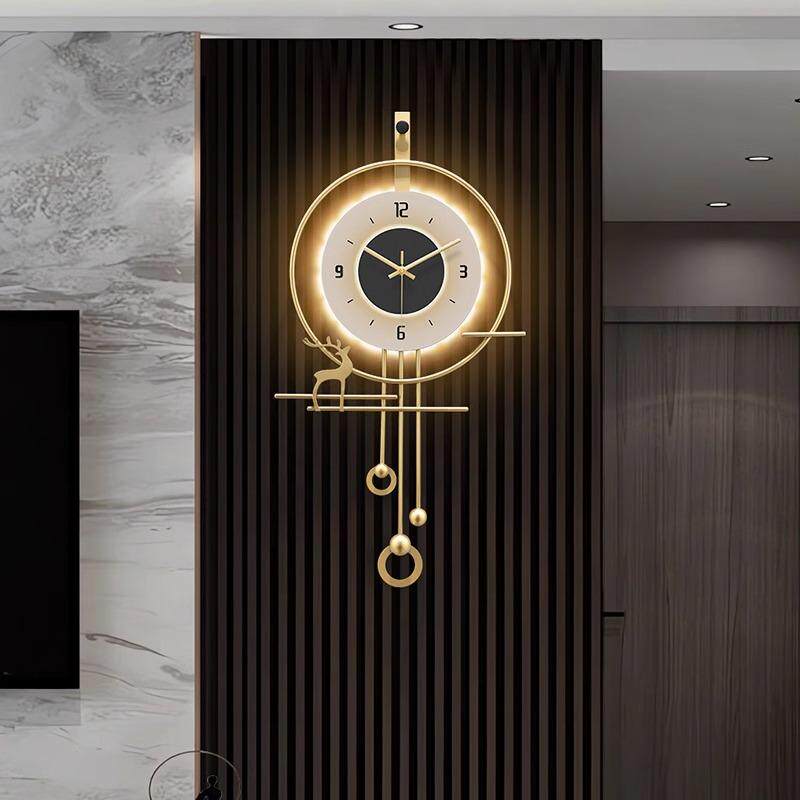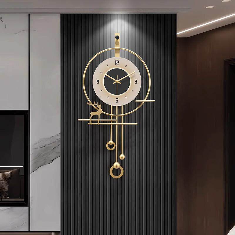 2024新款挂表现代电视背景墙时钟挂墙挂钟客厅格栅轻奢高级钟表画