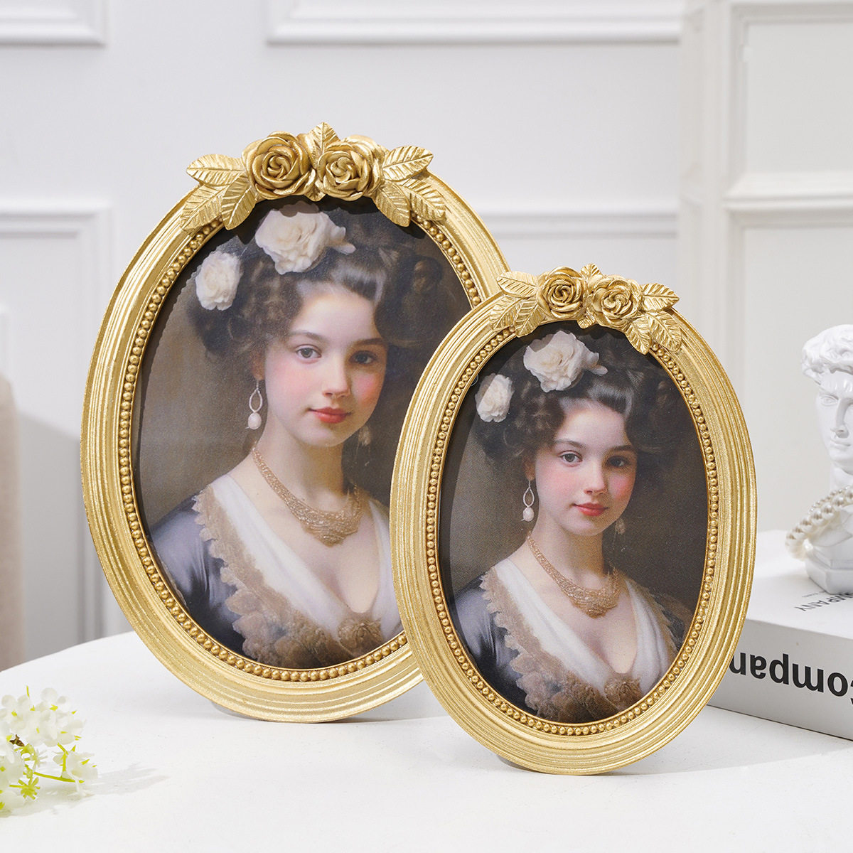 欧式浮雕复古相框摆台6寸7寸8椭圆树脂创意玫瑰花画框挂墙装饰品