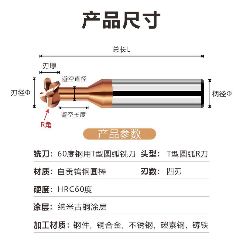 整体钨钢T型R刀钢用4刃圆弧t型r角开槽铣刀带圆弧角T刀涂层立铣刀