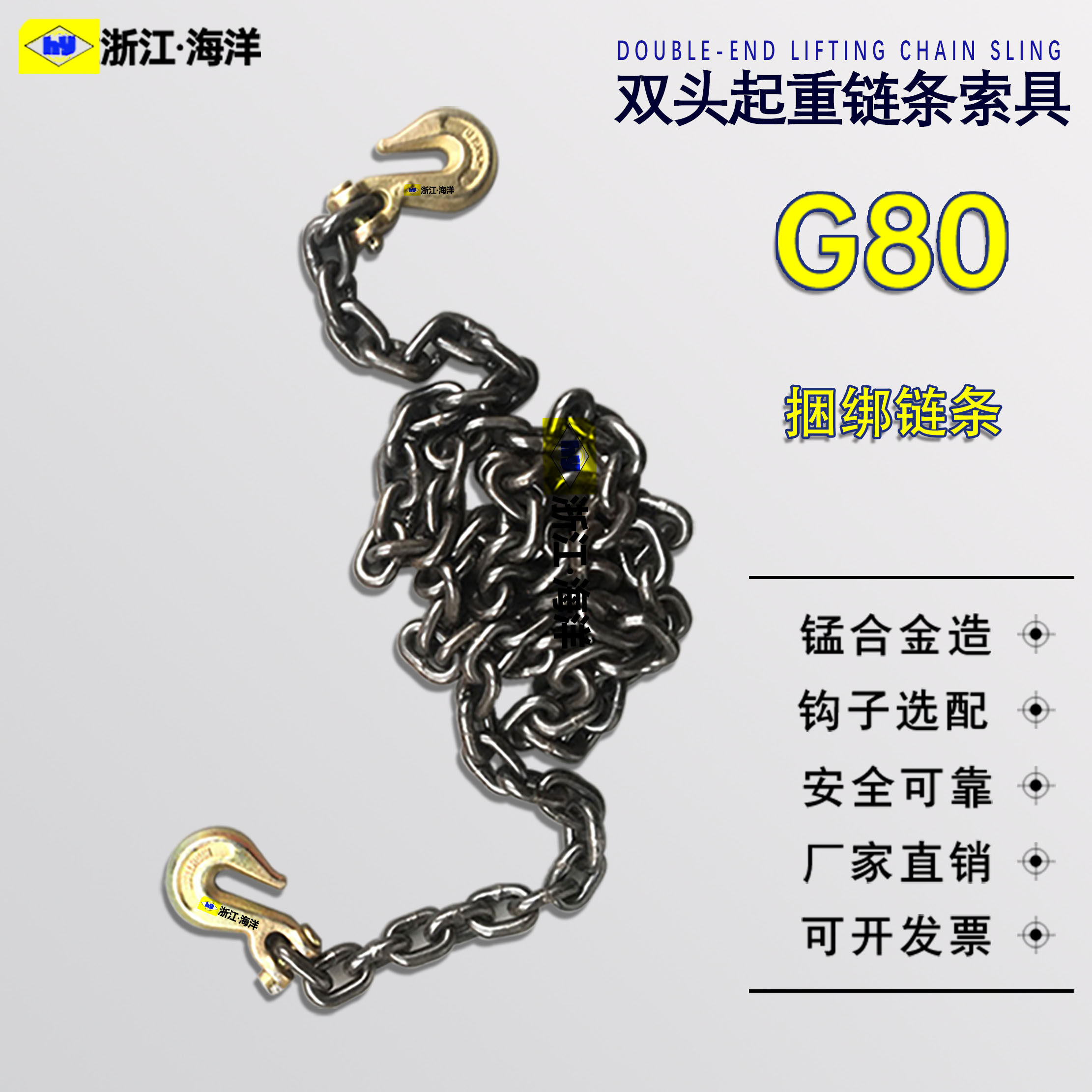 两头羊角抓钩组合捆绑吊链起重链条吊具锰钢铁链吊钩吊石头链条钩