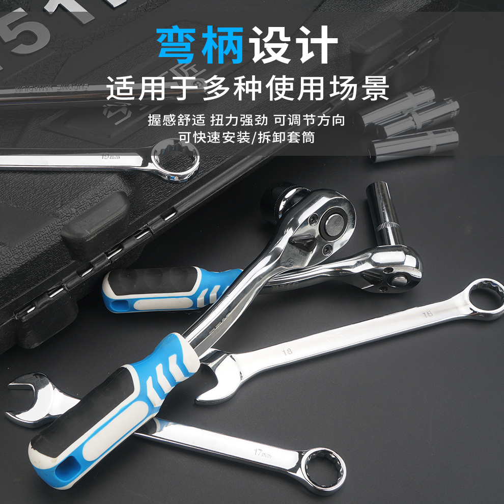 套筒组套小飞棘轮扳手汽修工具组合套装快速扳手多功能汽保五金