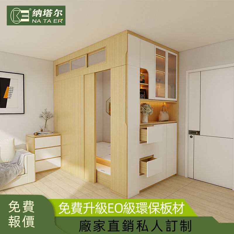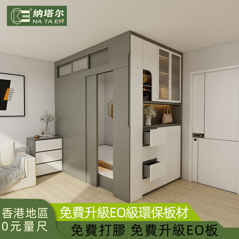 香港居公屋小户型全屋定制隔房C字榻榻米入户鞋柜推拉门家私订造